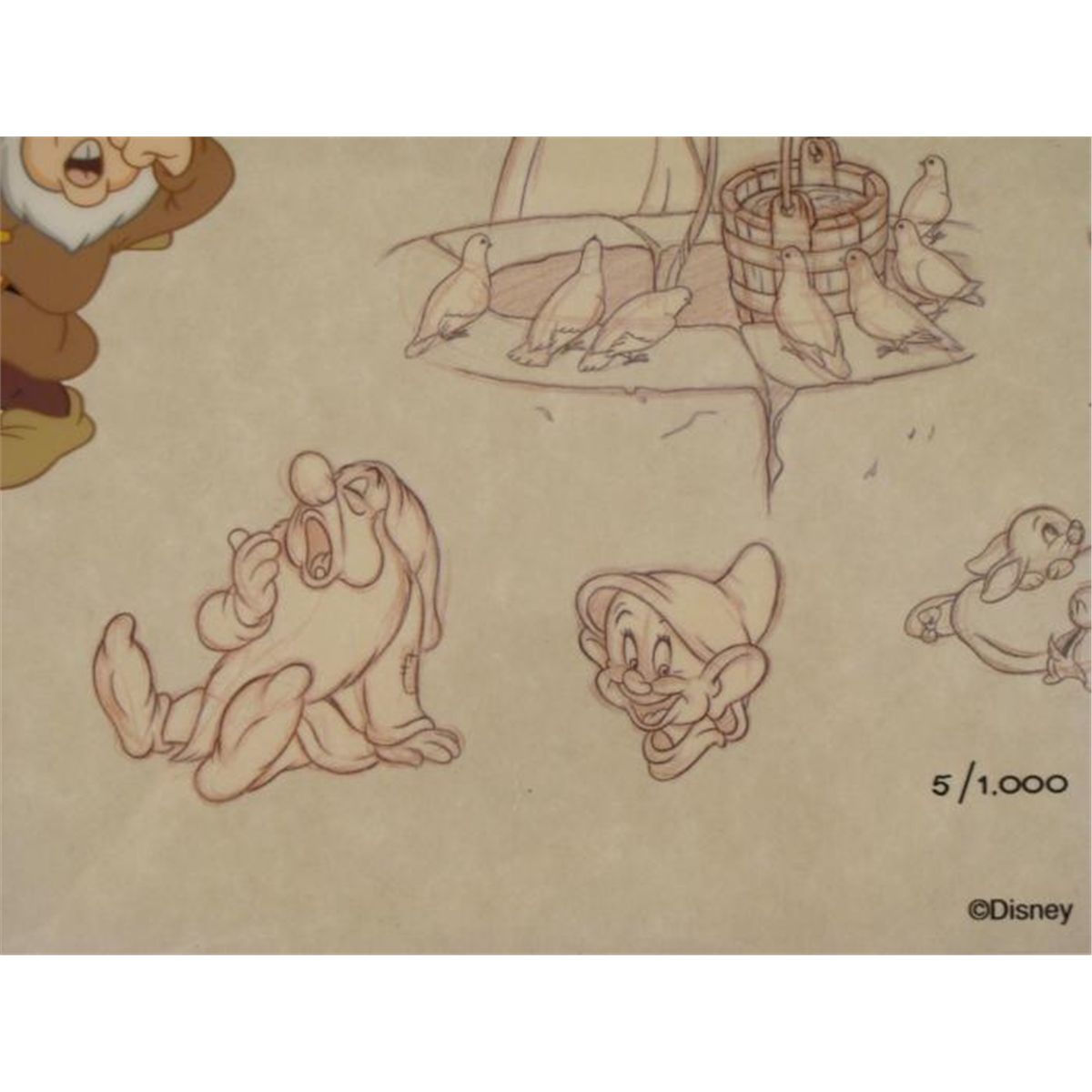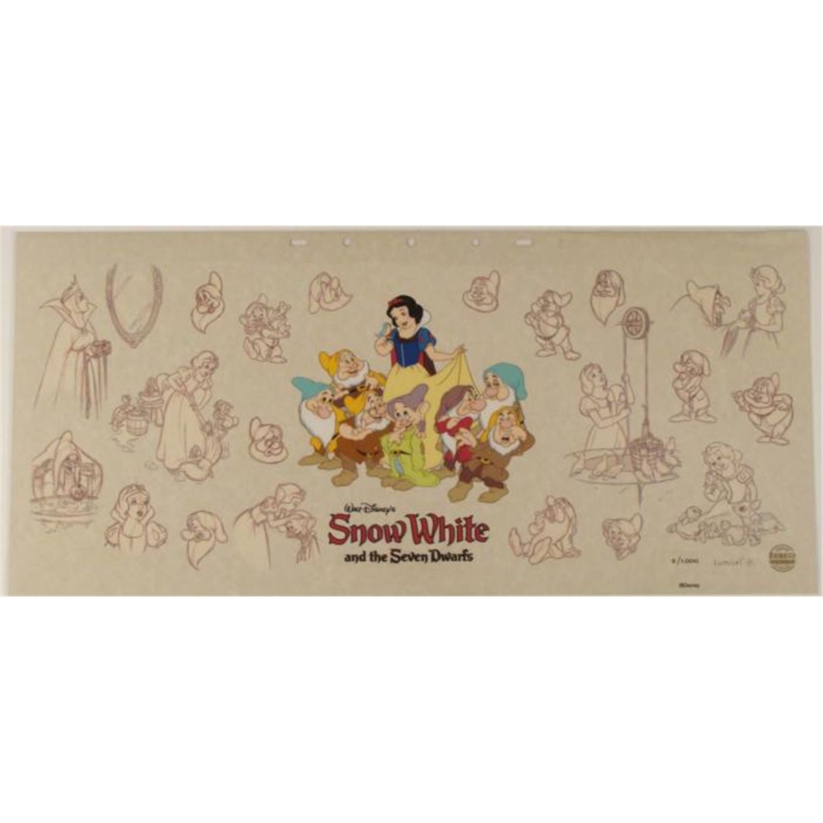 Walt Disney Snow White and the Seven Dwarfs Sericel w/ Background Art Animation * This is a serigraph cel proof originally designed for a LumicelSize: 11 1/4" x 25"Title: Snow White and the Seven DwarfsCondition: ExcellentLimited Edition out of 1000The background features character sketches showing their different expressions.**THIS IS NOT A LUMICEL *