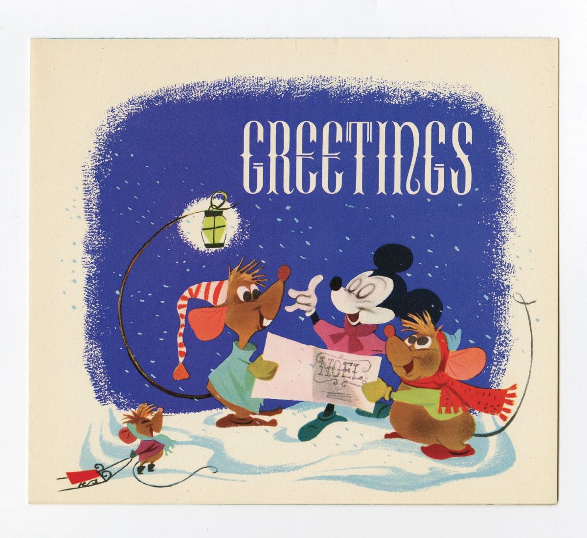 (1949) Features a "Cinderella" themed calendar inside. Measures 7"x16" opened. In fine condition. Comes with original unusued mailing envelope.