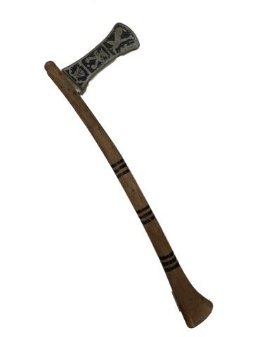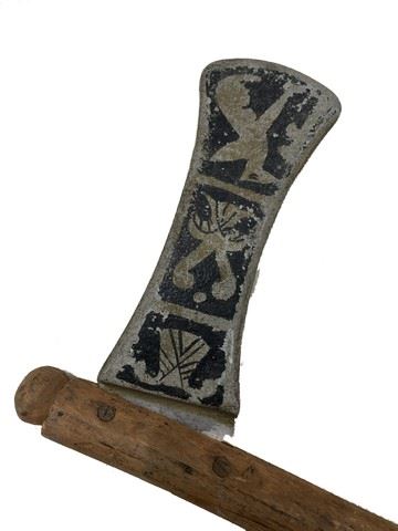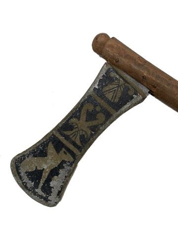 From Disney Studio Archives, this is a wooden axe with heiroglyphics on the blade. Axe handle is wood with painted black cirlces and the blade is metal, painted with the symbols. (27:x9") This incredible memorabilia comes direct from the Debbie Reynold's archive collection. Debbie Reynolds and Todd Fischer purchased and acquired this amazing collection decades ago from the MGM auction, 20th Century Props auctions, Christie's auctions, Planet Hollywood and numerous additional auctions. Debbie Reynolds then opened Hollywood Central Props where many of these props and costumes were used in the making of feature films and television shows. This auction also marks the beginning of a long-term collaboration with The Debbie Reynolds’ Archives and her son Todd Fisher with a collection of props, costumes and photos including an ensemble from CHOCOLAT, ROMEO AND JULIET, MISSISSIPPI, V FOR VENDETTA, THE PATRIOT, THE LAST SAMURAI and more!