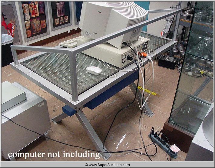 One of Kind Hand Machine Computer Desk with Custom 3-Layered Glass Top made by Disney Studios