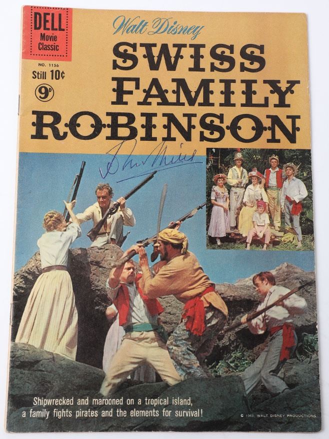 (Walt Disney Productions, c. 1960). Walt Disney's "Swiss Family Robinson" was released in theaters in 1960. Offered here is a rare, vintage "Walt Disney, Swiss Family Robinson" magazine signed by John Mills who played "Father Robinson" in the movie. The magazine is in good condition with normal wear from age and use.