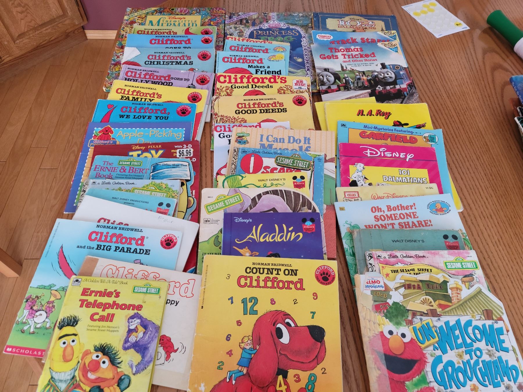 Disney, Thomas the Traib, seasame street, Clifford, Garfield, Curious George Books 41 count