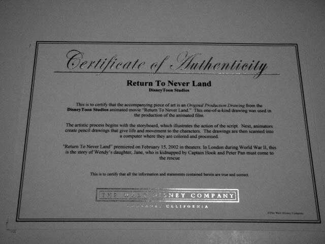 Subject: Tinker Bell hovering in the airMedium: Pencil drawing on paperSize: Approximately 12 1/2 x 17 inches Double matted in white and blackCertificate of Authenticity: From Disney Toon Studios