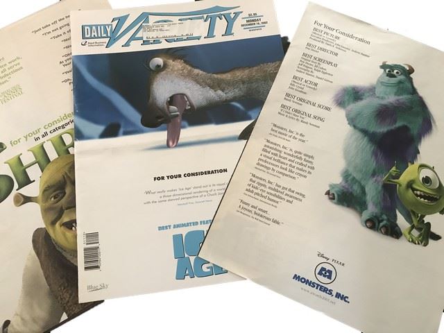 Disney World on ice programs and Disney Pixar blue sky animation trade ads 50-plus. Also included is two Walt Disney World on ice souvenir programs.