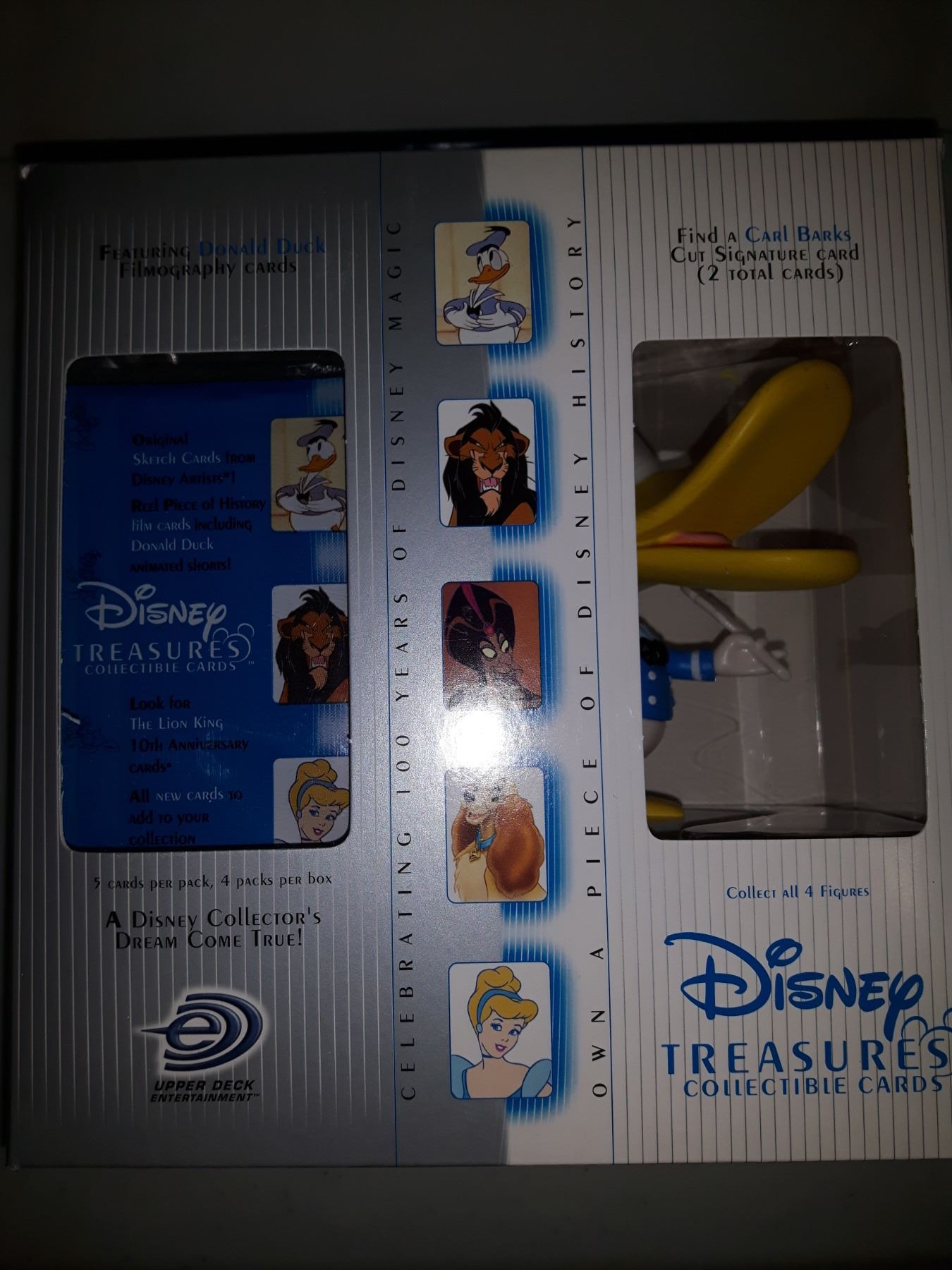 Disney Treasures Series 2 - unopened 4 Pack Box with Vintage Donald Figure. The box contains -4 Packs of Disney Treasures Series 2 and 1 Vintage Donald Mini Figurine