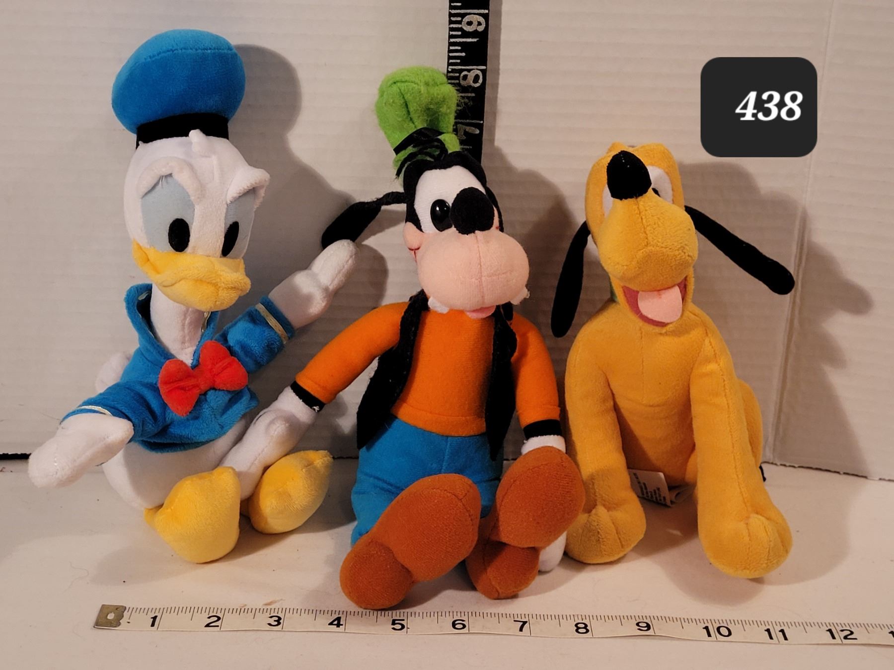 Disney collectables. Plush Goofy, Pluto,, & Donald Duck.