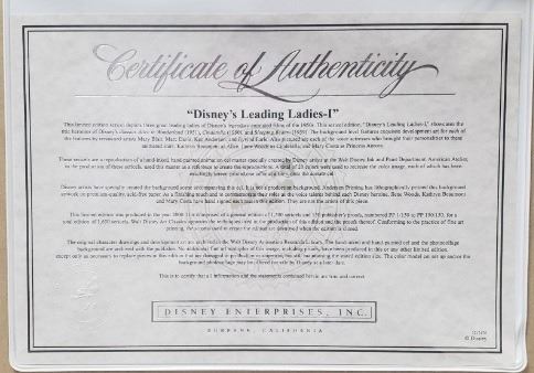A FRAMED Vintage Disney limited edition signed , unnumbered sericell 25x30" in frame w/ COA