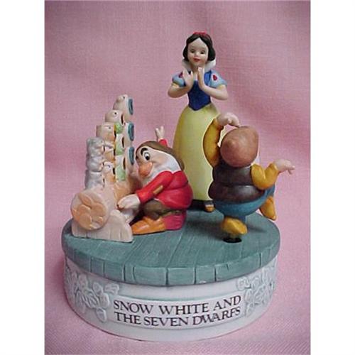 This darling Snow White and The Seven Dwarfs music box was produced by Grolier in the mid 1980's as part of the Musical Memories series. This is a Limited Edition and has the number 13359/19,750. It was designed by Walt Disney Artists and plays "Heigh Ho, Heigh Ho". All molds have been destroyed and this series will never be issued again.