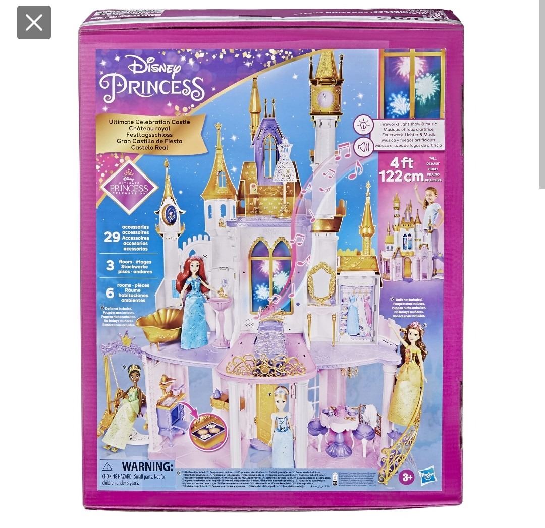 Disney Princess - Ultimate Celebration Castle - 4ft, Doll House With Furniture And Acc, Musical Fireworks Light Show, 3 Stories And 6 Rooms, Shelf Pull, New Condition