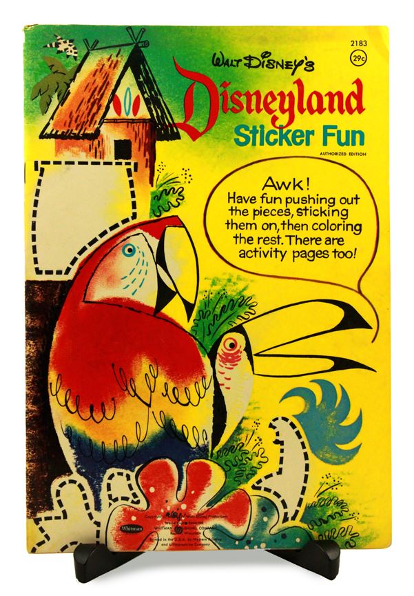 A fun children's activity book from the early days of the park. The reader could place stickers onto corresponding images of the park, and then color around the stickers to complete the page. This book is in used condition, with the stickers placed on their respective pages. Most, if not all of the book is uncolored. In good condition, used, with some wear.
