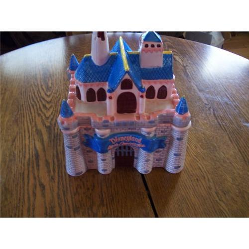 This is a wonderful Limited Edition Cj depicting the 40th Anniv.of Disneyland.Made in 1995 and is one of few three-dimensional creations of Sleeping Beauty Castle ever offered to the public. .Manufactured by the Nestle Food Co. under authority of The Walt Disney Company.Number 42,126 out of 100,00.made.Measures 11 1/4" tall and is 9" across the front base.This is a large jar.Has certificate of Limited Edition inside jar.