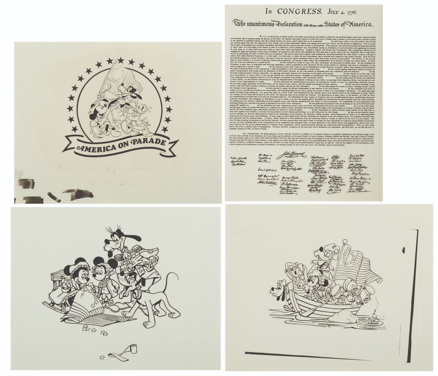 (Disneyland, 1975) A collection of seven production stats related to America on Parade. Measuring up to 8" x 10.25", the stats are in very good condition with wear from production use, and one having been folded twice.