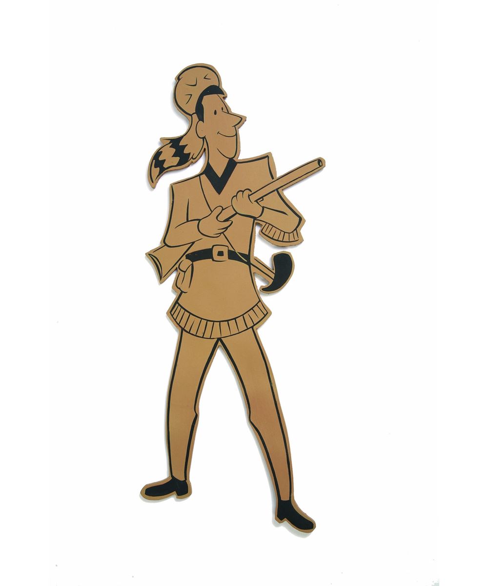 (Disneyland, 1990) A rare light-wooden kiosk display sign, hand-cut and hand-painted with retro imagery from the park. These signs were used to decorate kiosks in the park to celebrate Disneyland's 35th anniversary. The Davey Crocket/Frontierland themed sign measures 18.5"x8". In very good condition, with minimal wear from their use.