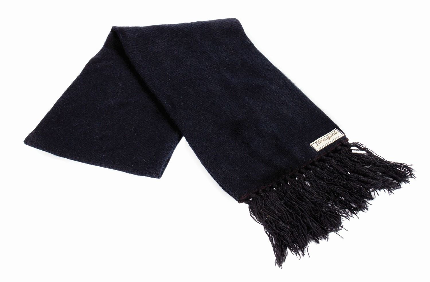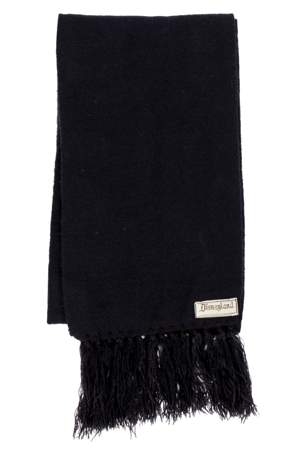 (Disneyland, c.1980s) A Disneyland cast member scarf. The knit scarf has tassels on either end, and features a woven Disneyland label sewn onto the scarf at one end. Measuring 59" long without the tassels, the scarf is in very good condition with some wear from use, including light fraying at the edges of the tassels.