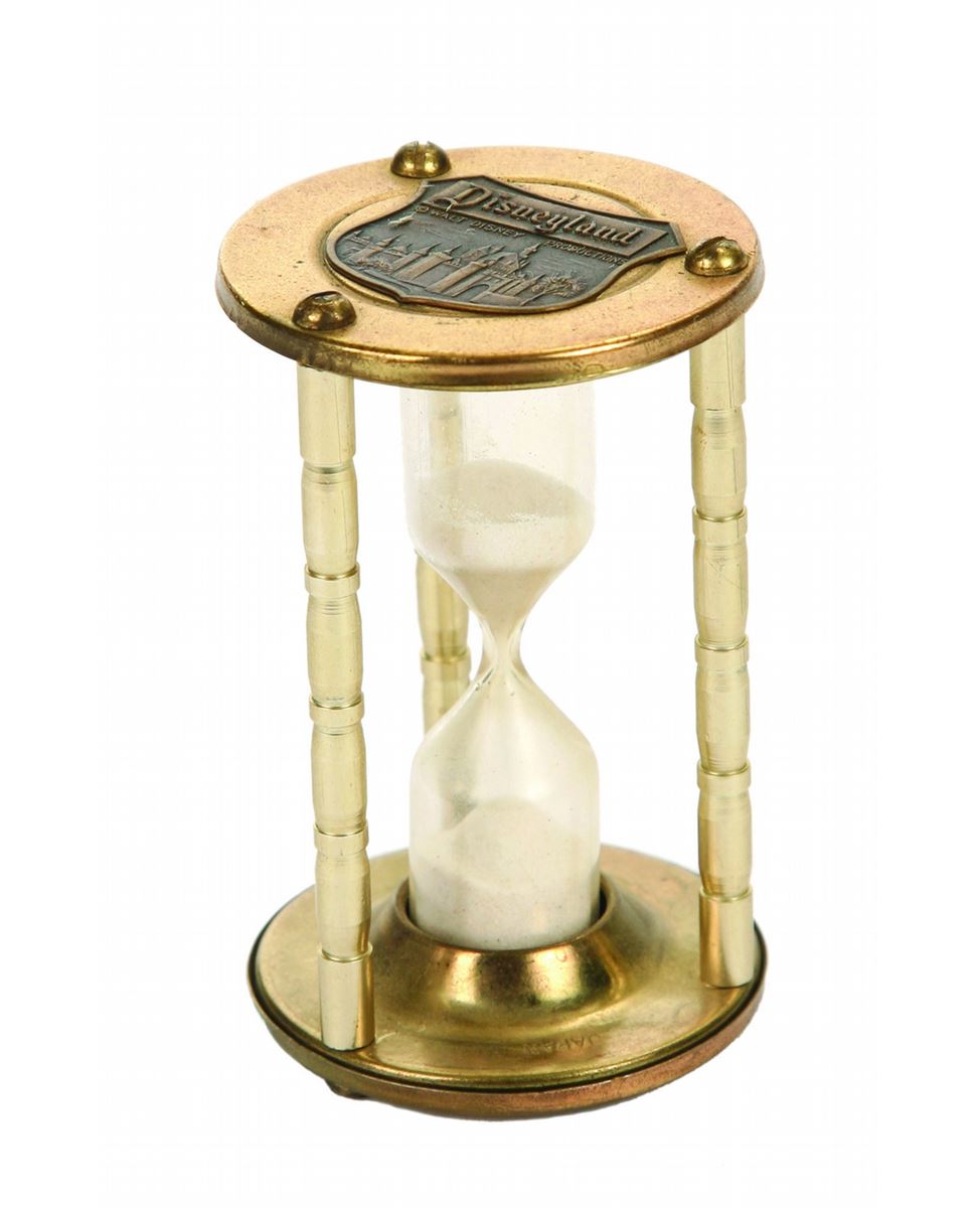 (Disneyland, 1960s) An early souvenir from the park, this vintage egg timer features the “Walt Disney Productions Disneyland” crest on the top surface. Fully functional and measures 3.25” high. Made in Japan. In good condition, with patina to portions of metal.