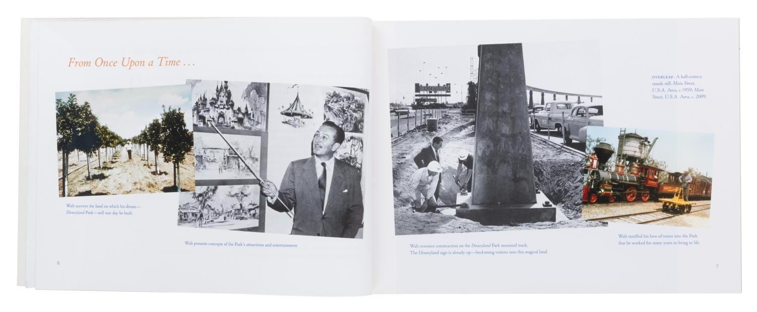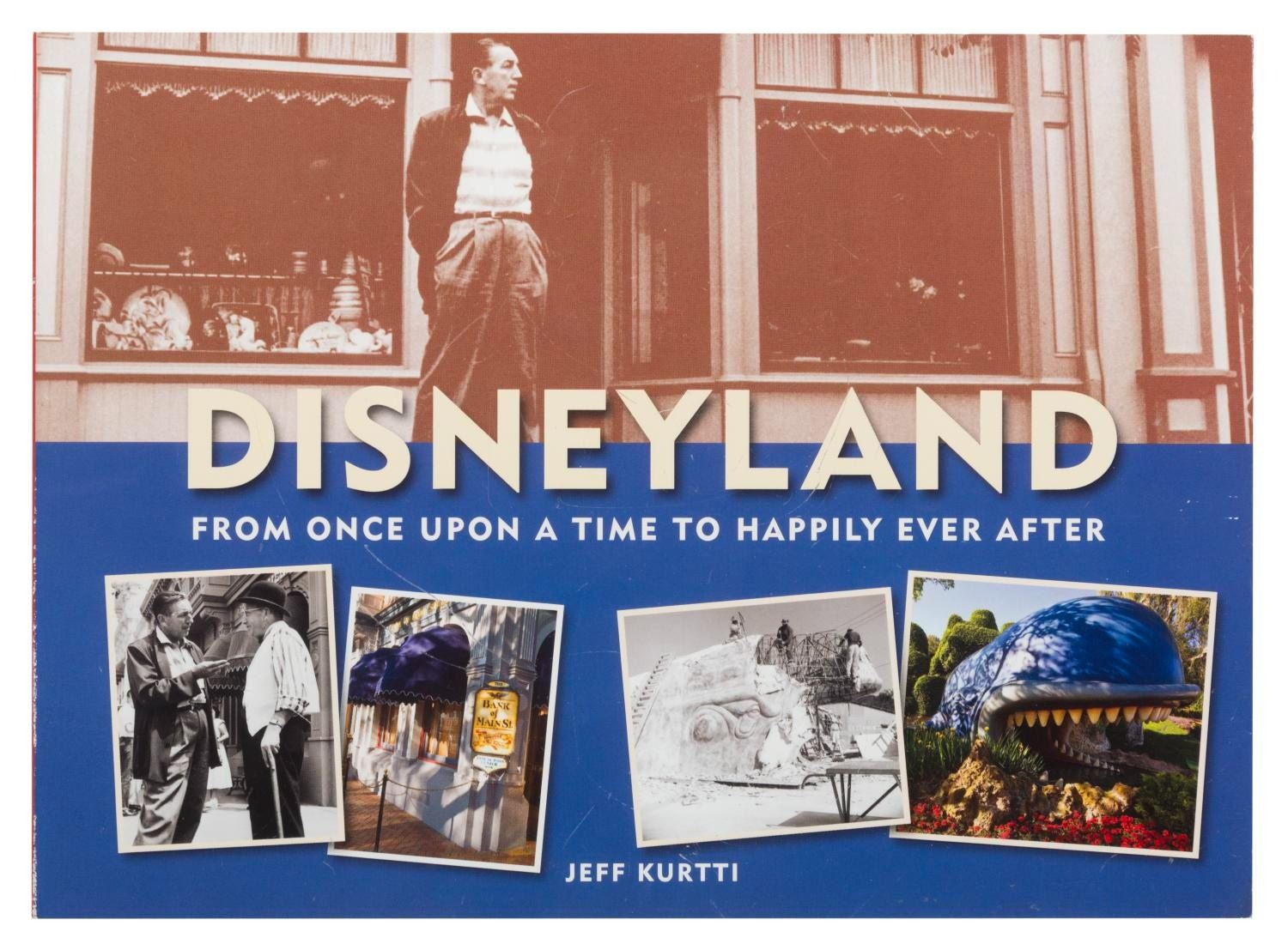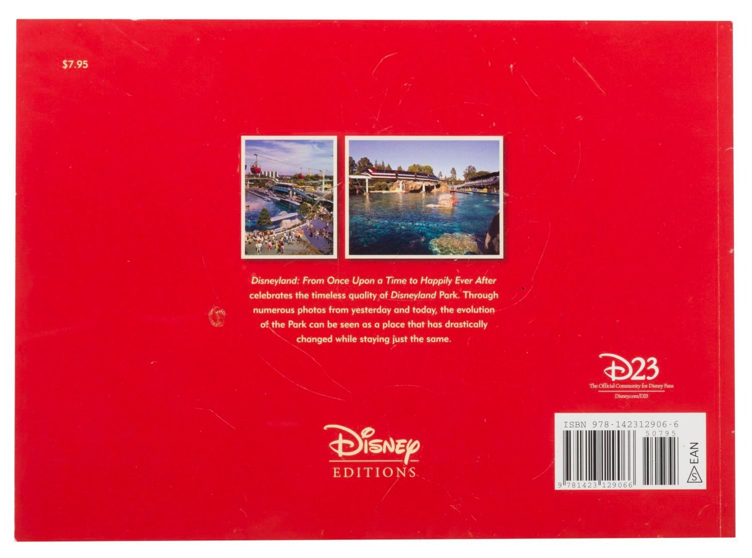 (Disney, 2010) A Disneyland: From Once Upon a Time to Happily Ever After book written by Jeff Kurti, featuring large photos from throughout the Park’s history. Measuring 8" x 11", the 64-page book displays in very good condition with light surface scratches and wear.