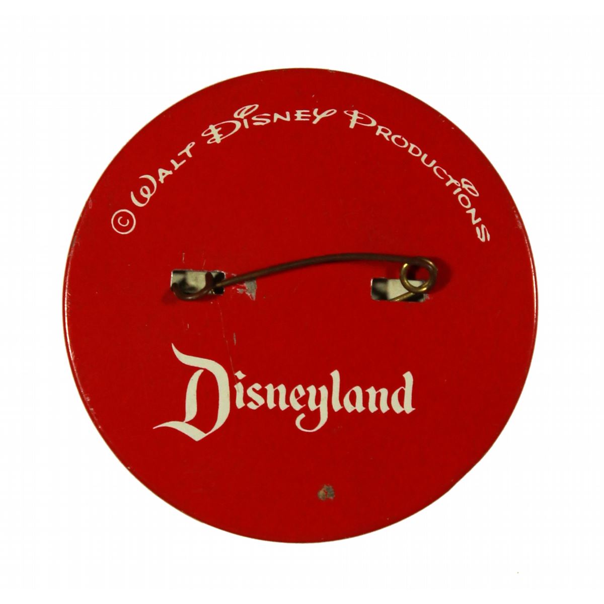 A nice pin back lenticular button by Vari-Vue featuring Goofy. The image toggles between Goofy and the text "I'm Goofy about Disneyland" depending on the angle of view. A beautiful and classic-looking item from the early days of the park. Still in fine working order. Good condition with some small scuffs to the surface. Measures 2.5" in diameter.