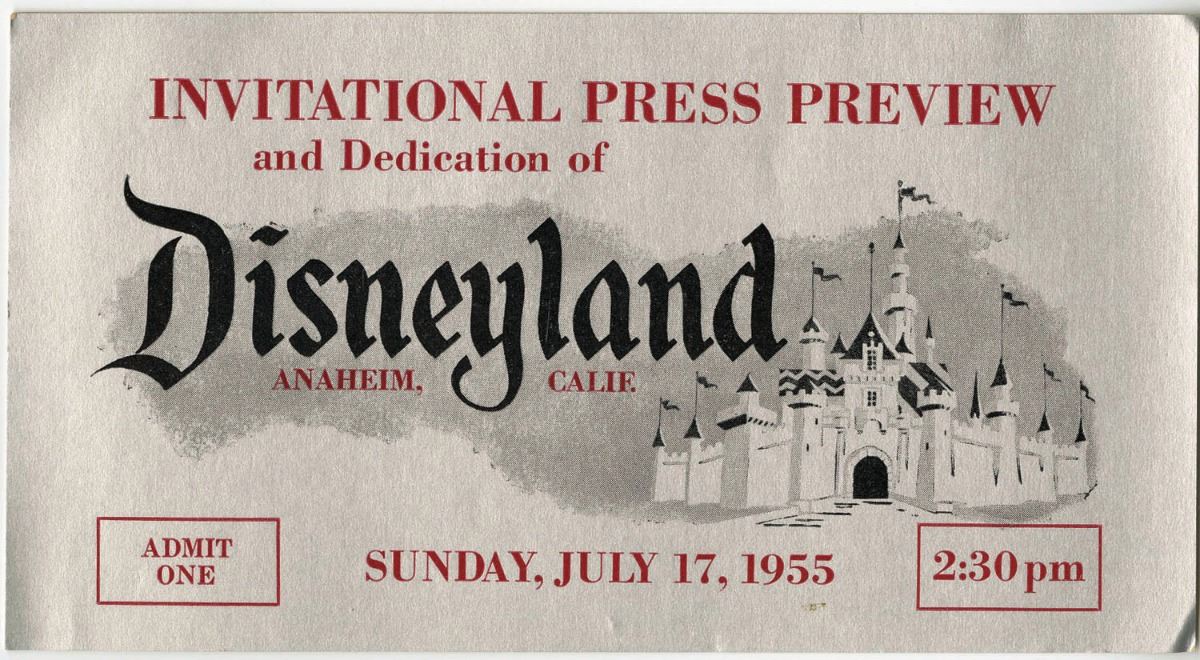 (Disneyland, 1955) Rare Opening Day Pass, given to press, VIPs, and Disney employees for the opening ceremonies of Disneyland on July 17, 1955. The pass measures 3.5"x6.5" and is in fine condition.