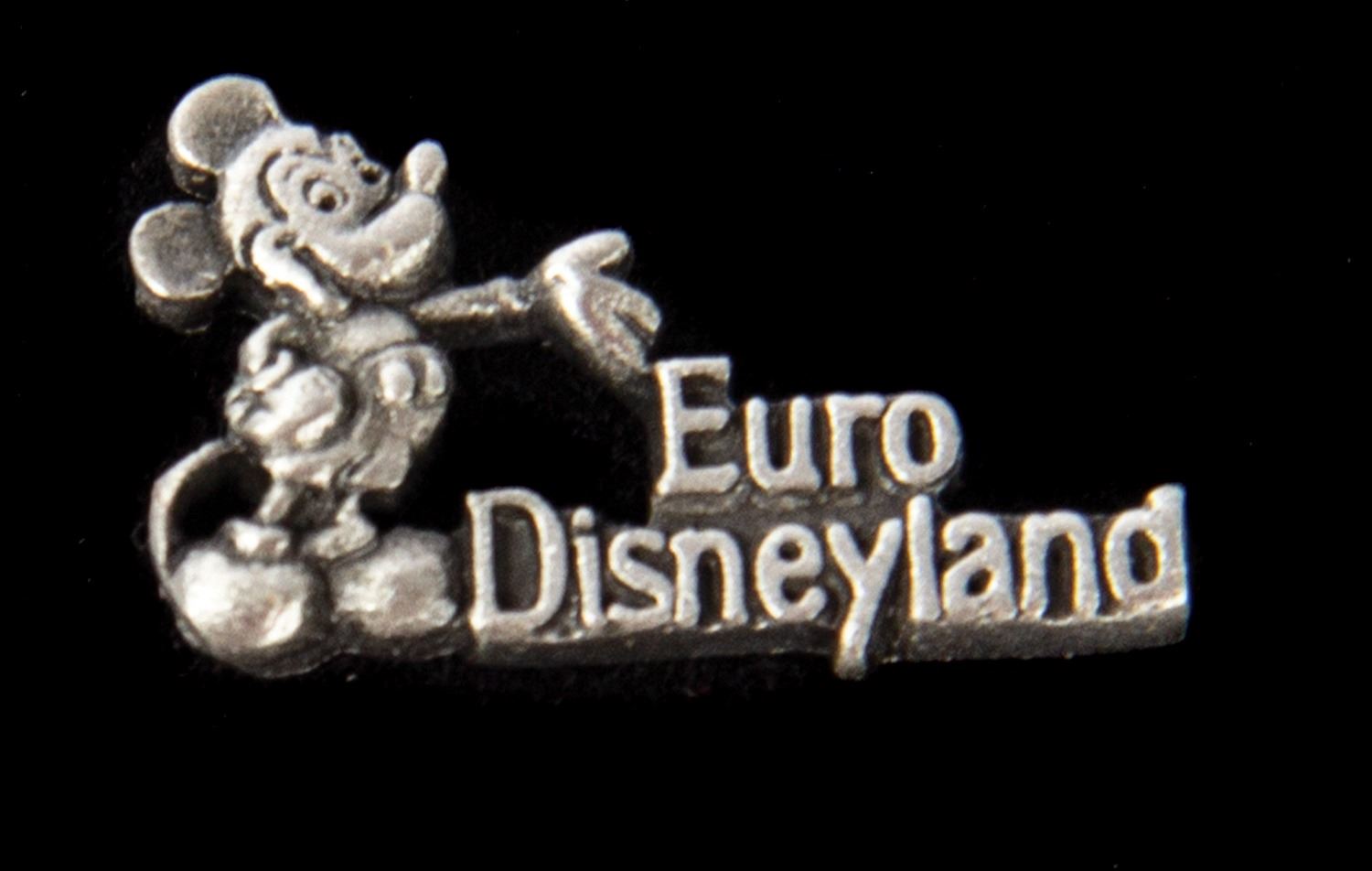 (Disneyland Paris, c.1990s) A rare pewter pin given to Bob Phelps of Euro Disney's Costuming Department. This early cast member pin measures 0.5"x1" and is in very good condition with minor wear.