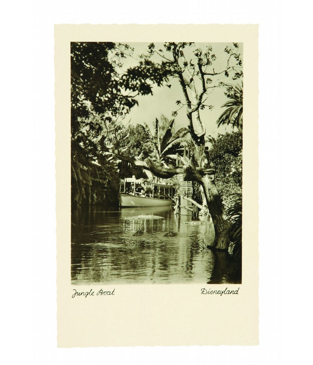 (Disneyland, 1956) An extremely rare Real Photo Postcard featuring the Jungle Cruise attraction in Adventureland. Printed in Germany, Real Photo Postcards were some of the earliest postcards at the park and are very hard-to-find. This particular card was part of the WED research library and has a WED stamp on reverse. Measures 3.5”x5.5”. In fine unused condition with only minor wear.