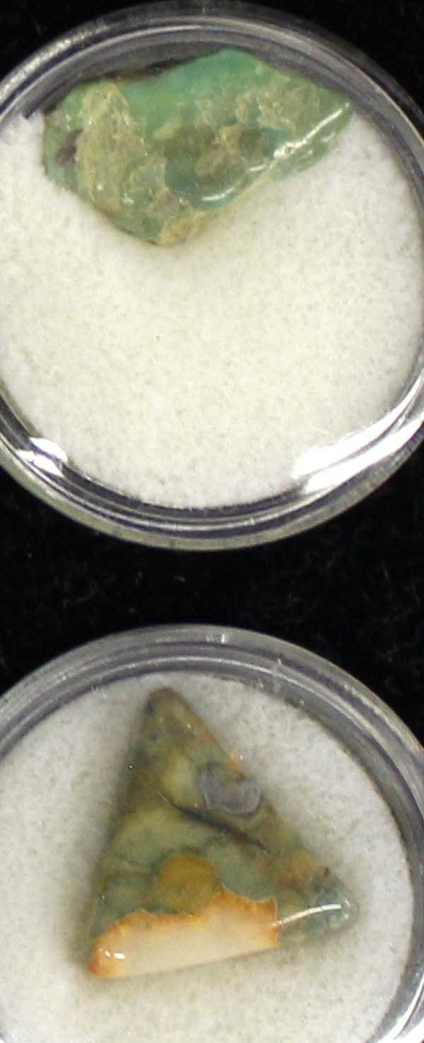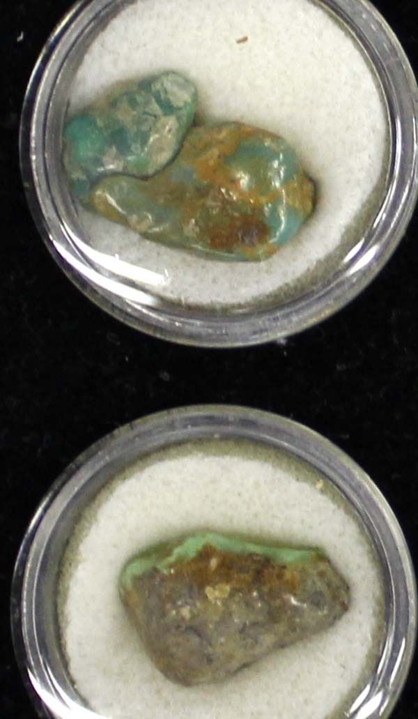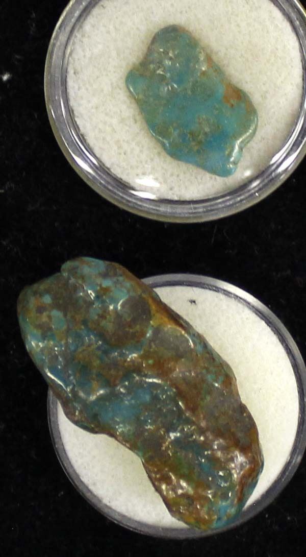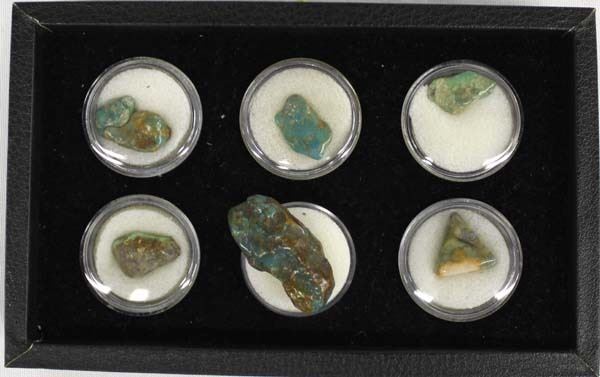 Display Box Featuring 7 Turquoise Nuggets, largest nugget measures 1.5'' x 5/8'', display box has a double snap closure, 73.15 carats total wt.