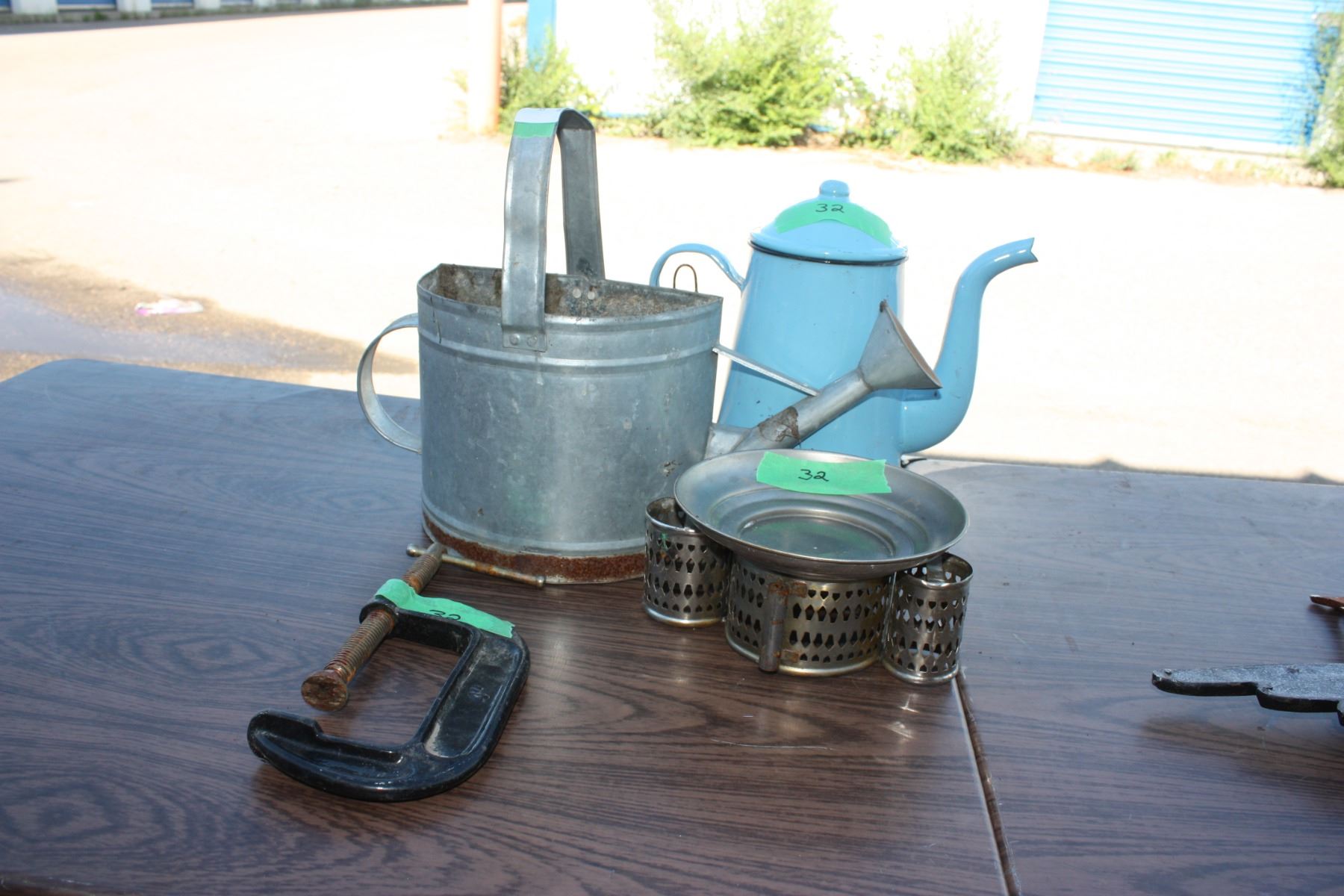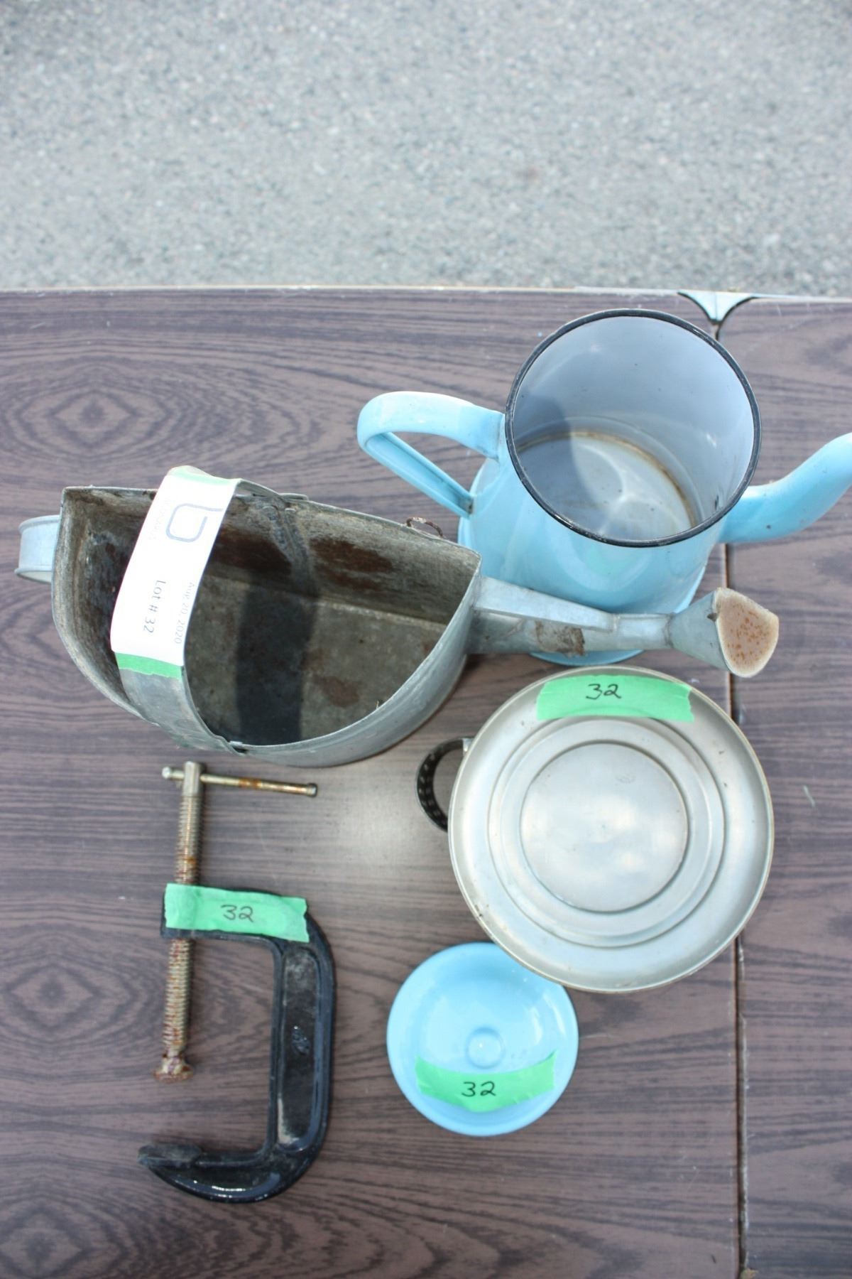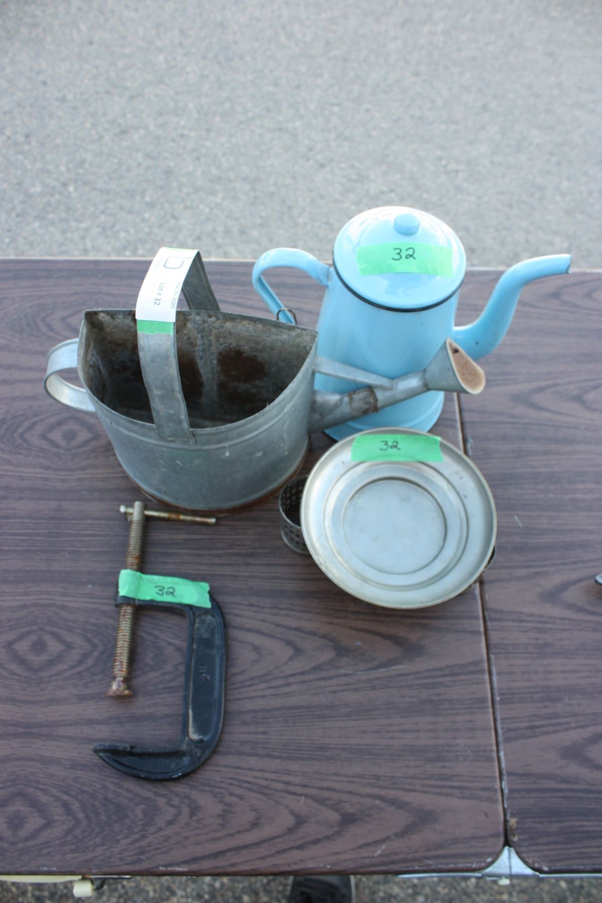 Display Can, Blue Tea Pot, 4" C Clamp and Misc