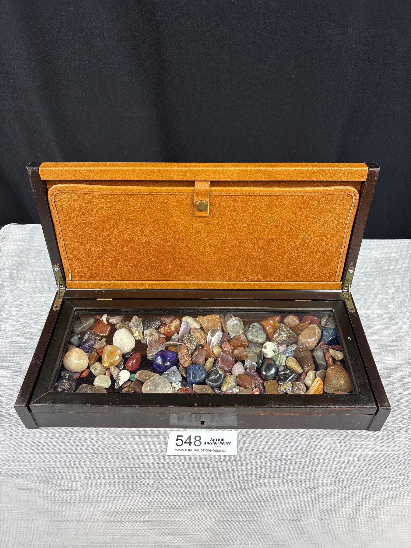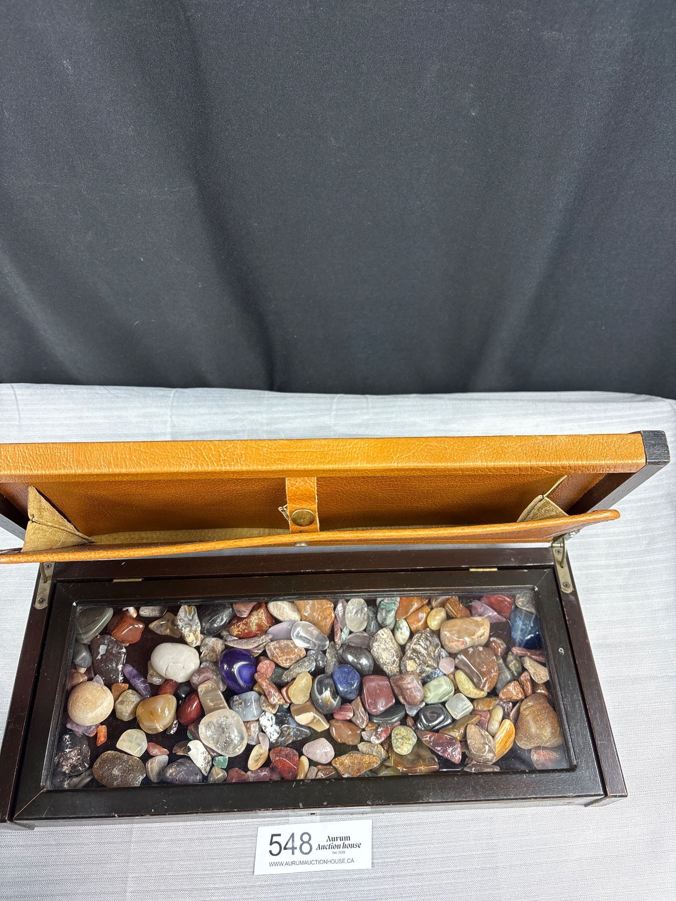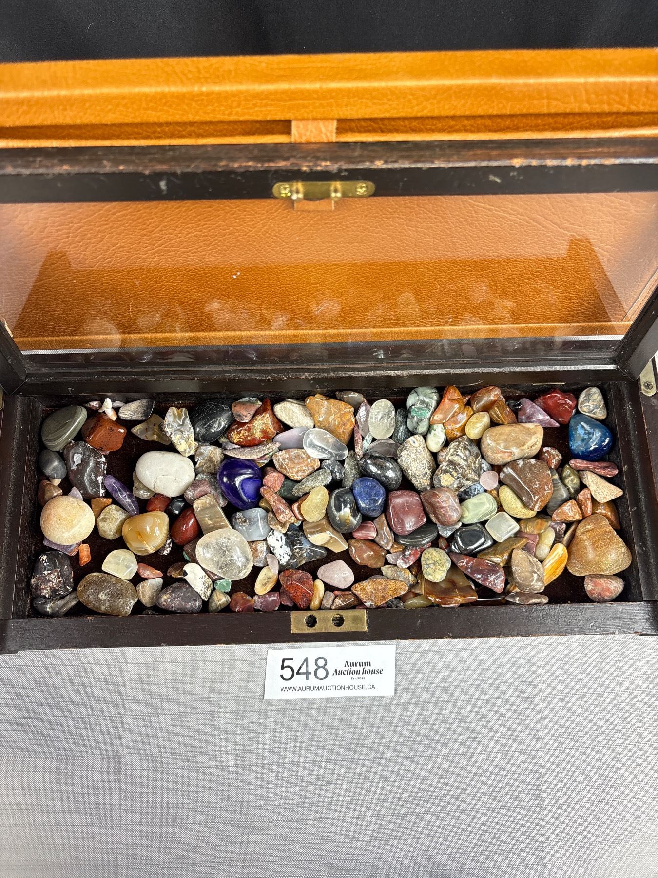 Display Case Full of Polished Rocks, Gemstones, Crystals, etc
