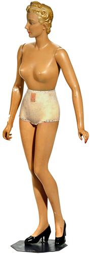 Mannequin, 1935 Full-size display model, height 69 in., body made of mass, colored head, moveable arms, on solid stand. - Very attractive!<Br>