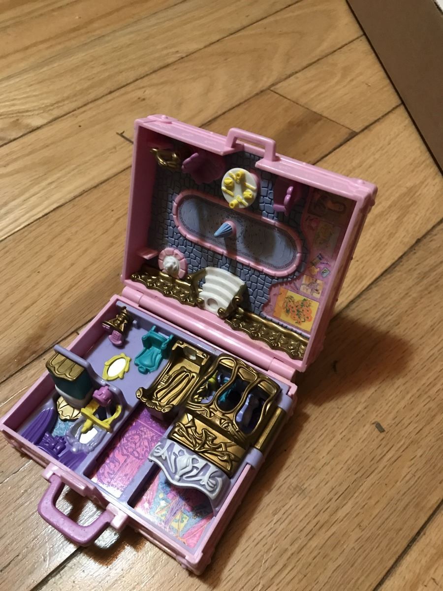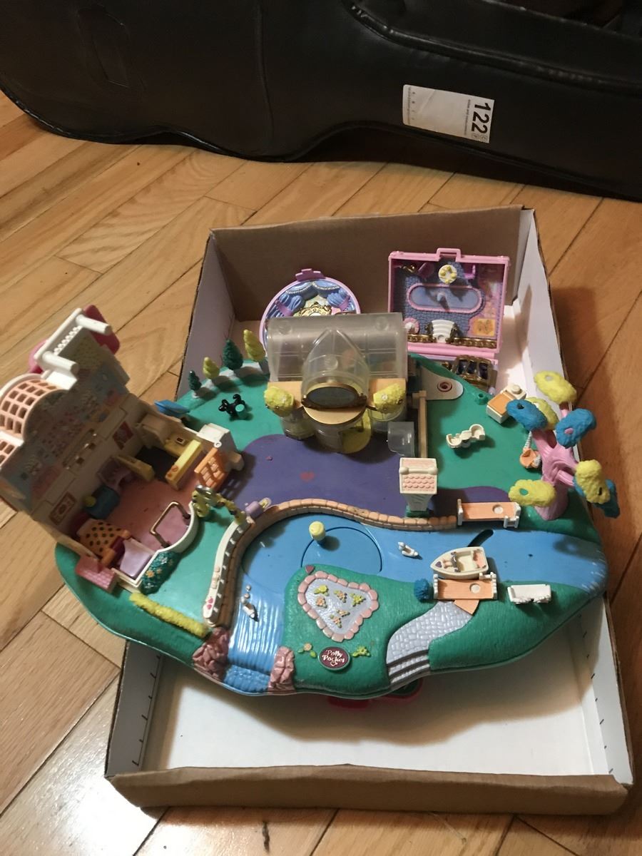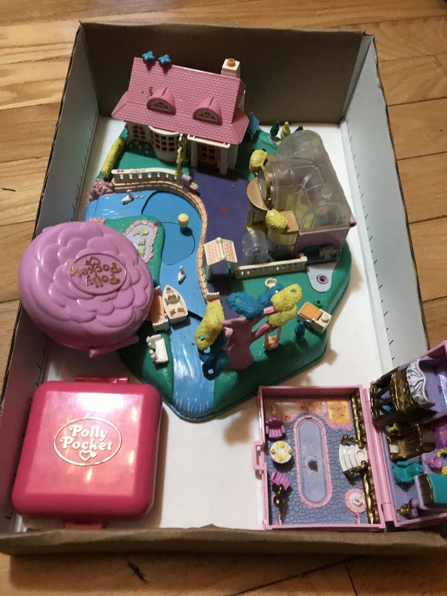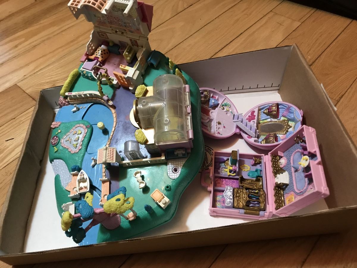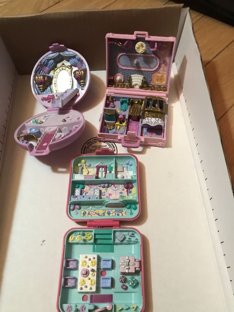 Open wooden display case filled with novelty artifacts. Pickup at 9am