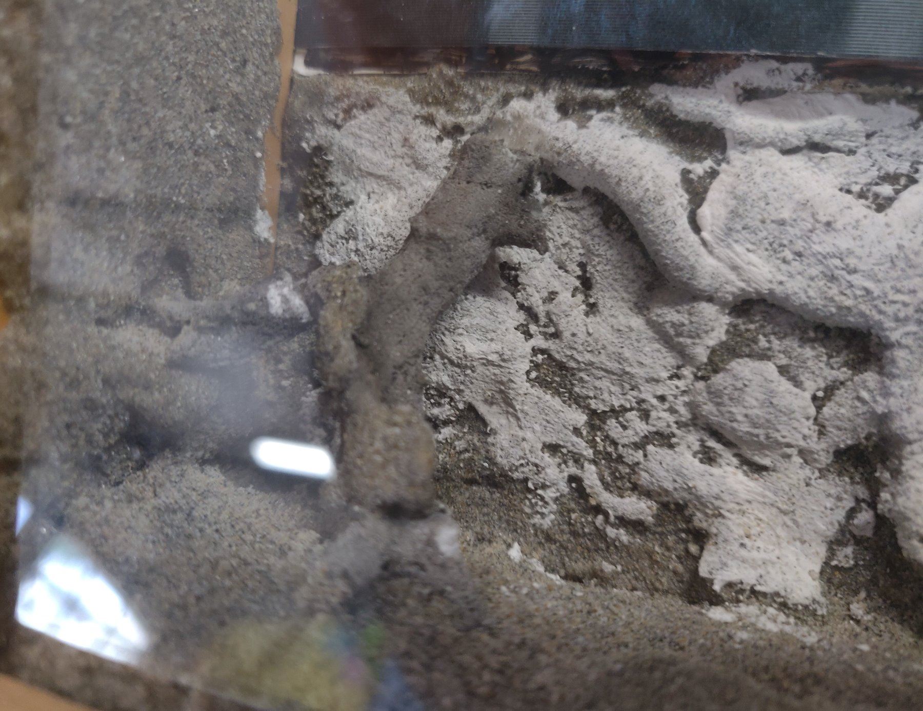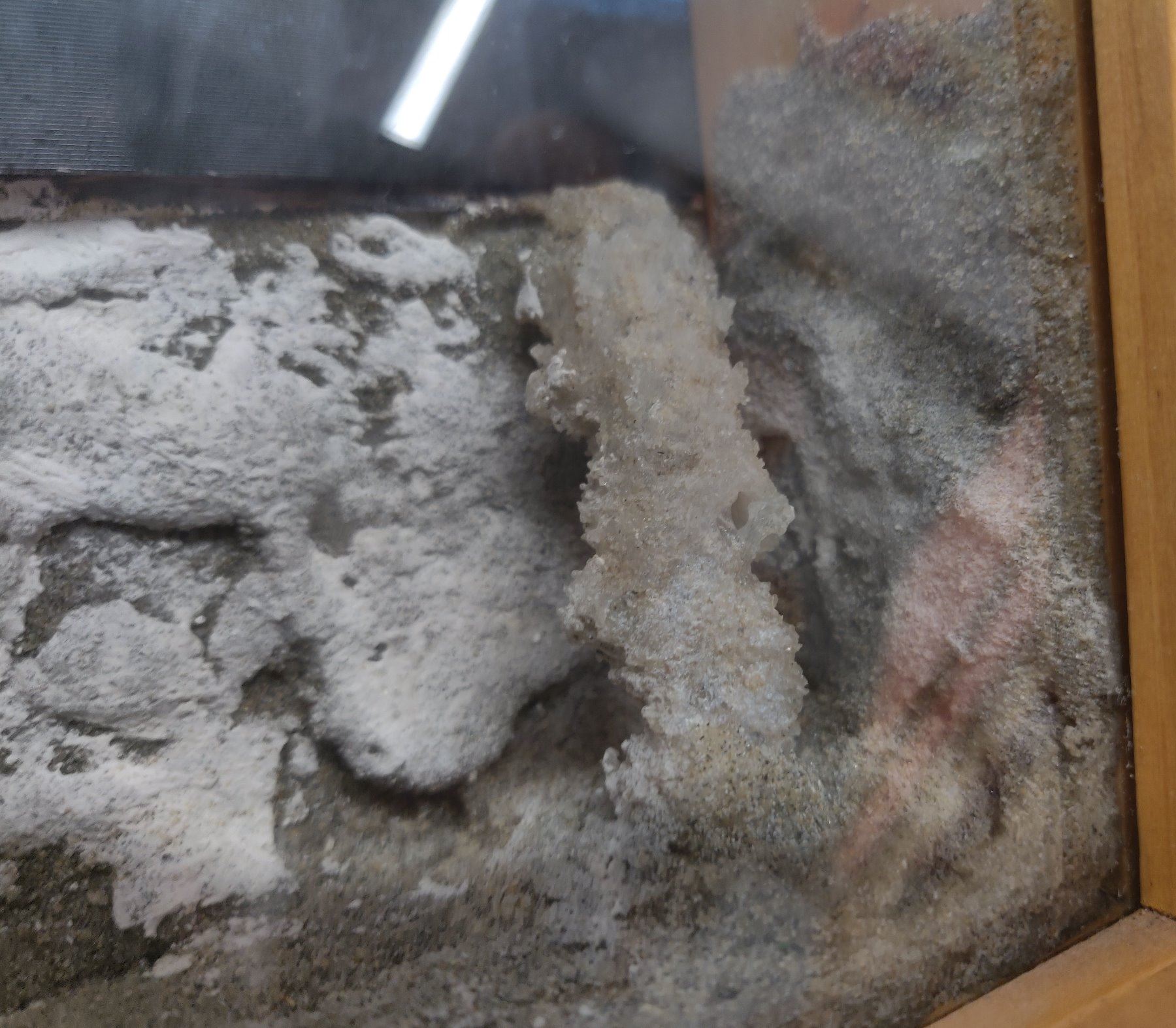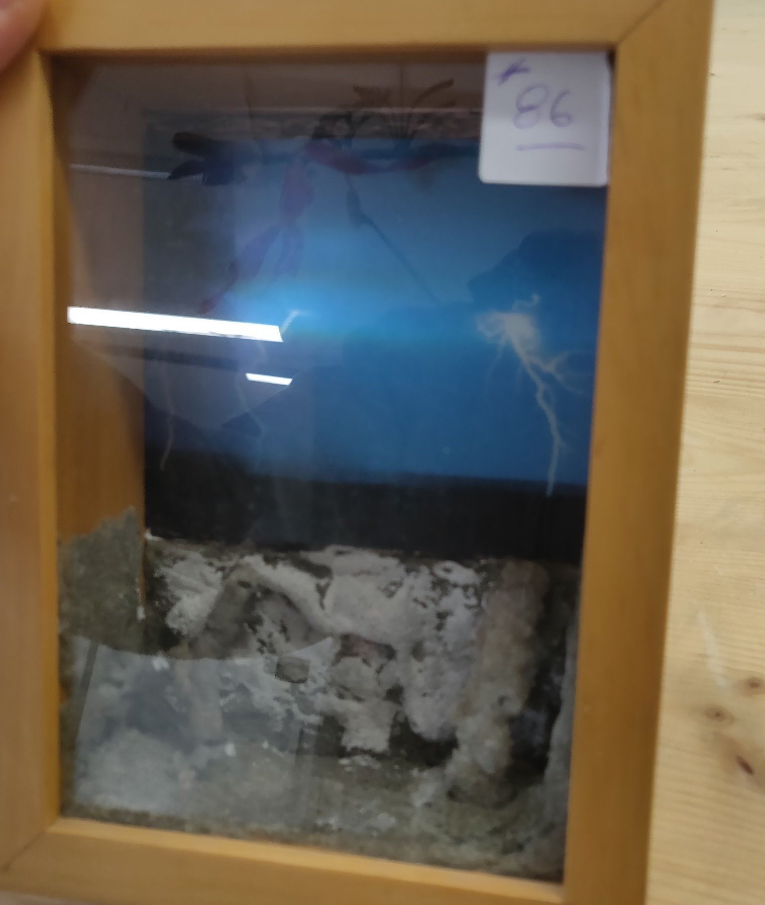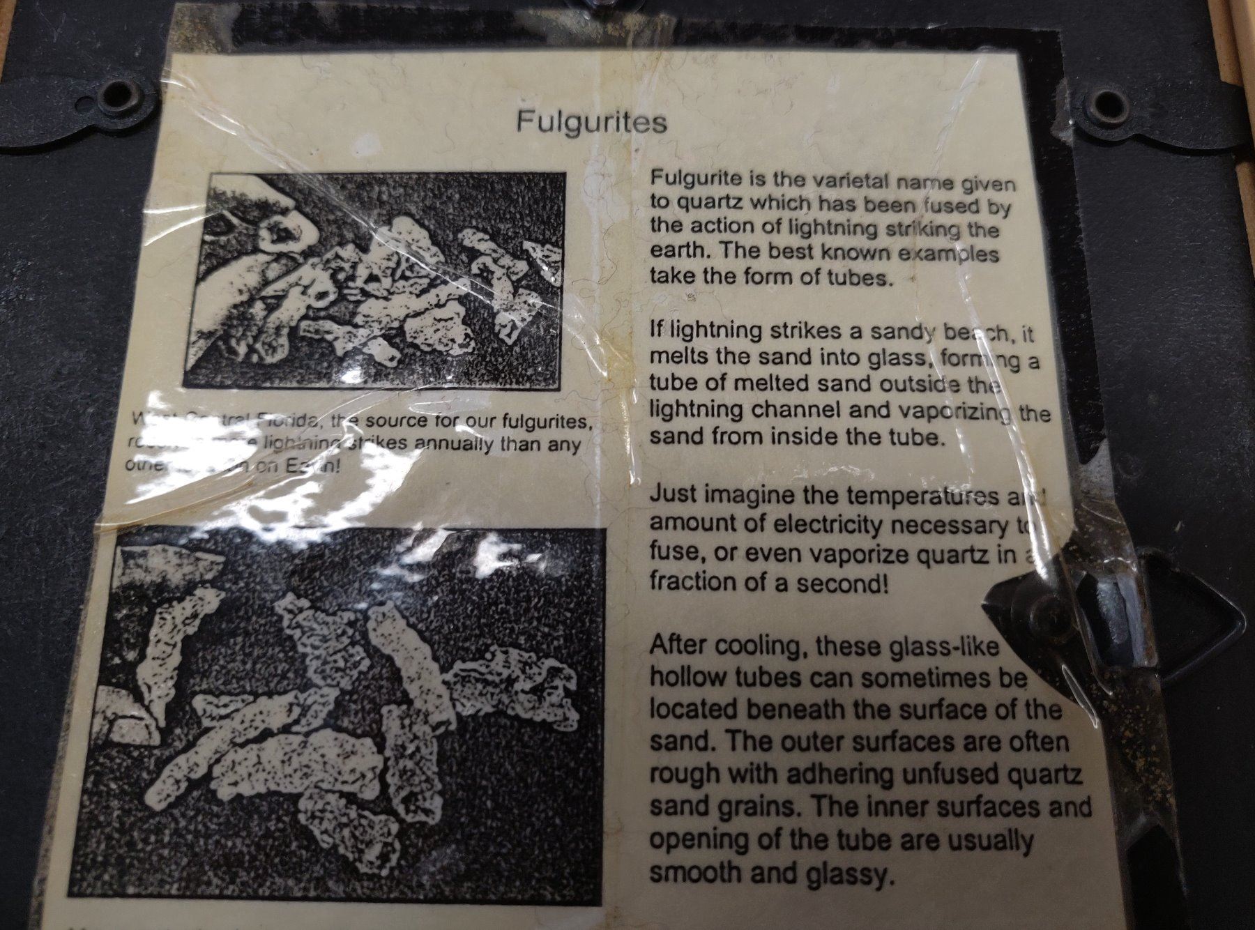 Display of Fulgurites, c. 100 years old. Made of sand, the frame measures approx. 6" x 4" x 3". Arizona, Florida. Frame included. Condition: Good, see images. Shipping: $18.50 w/insurance and signature, due to size.
