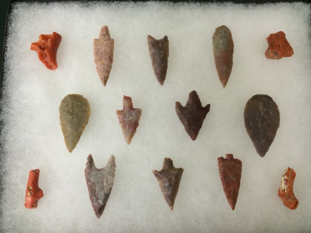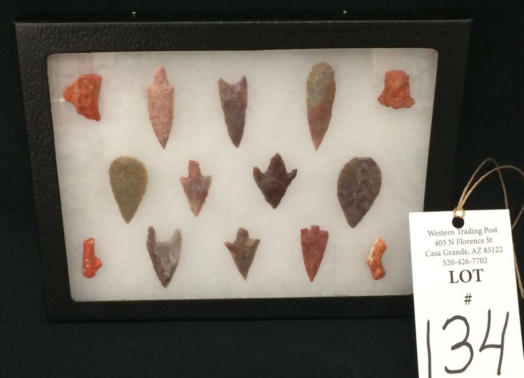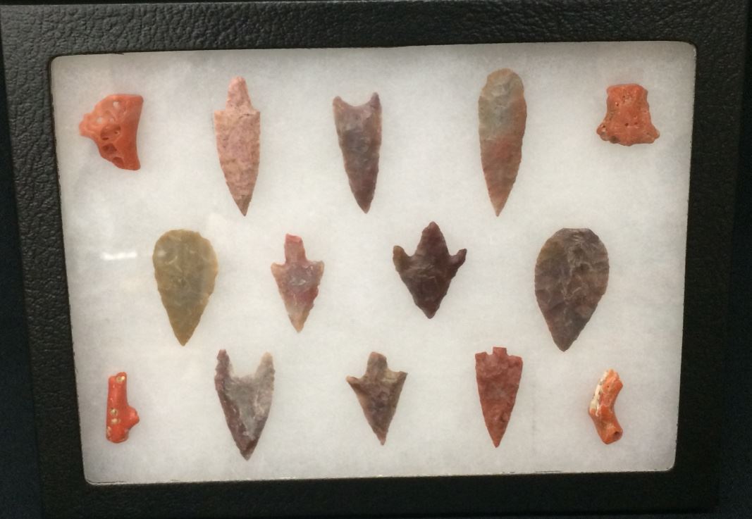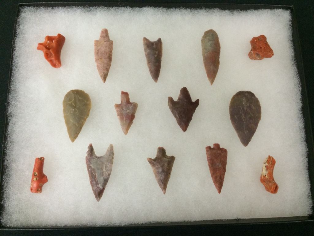 There are 10 arrowheads accented with natural branch coral in this shadowbox (riker box 6.25 X 8.25). Good condition. Shipping: There will be a $5 handling / packaging fee for shipping this lot. The actual cost of postage will be added on top of that.