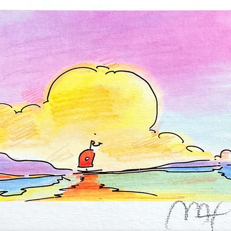 "Distant Sailboat" is a limited edition lithograph on paper by Peter Max, numbered and hand signed by the artist. This piece comes framed. Includes Certificate of Authenticity from Peter Max Studios. Measures approx. 13" x 13" (frame), 3" x 3" (image).