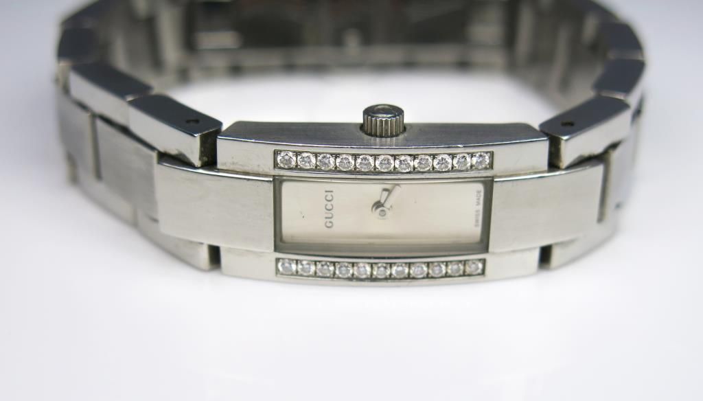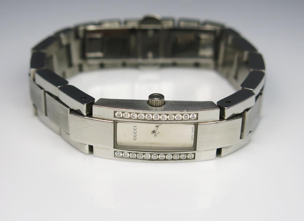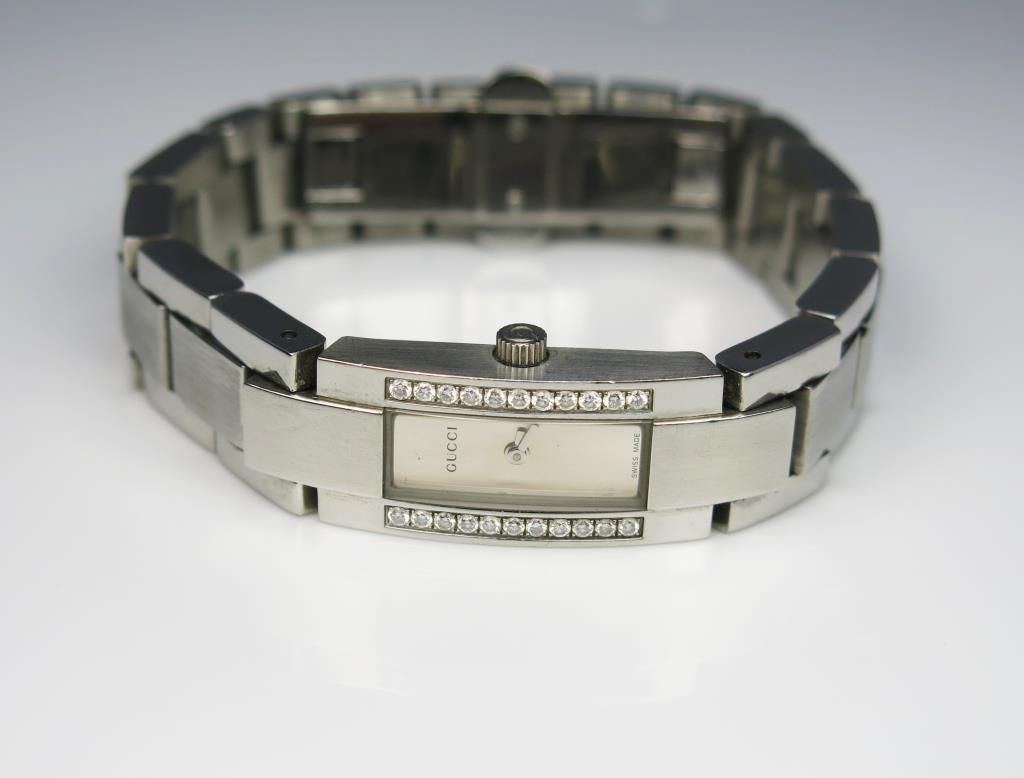 Distinctive ‘GUCCI’ Ladies Timepiece set with 22 round ‘IDEAL’ cut diamonds weighing approx. 0.40 carats of F-G colors and VVS clarity. Retails at $2,290 Estimate $1,000-$1,500