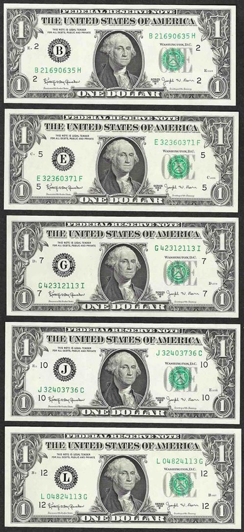 One District Set of 1963B $1 Federal Reserve BARR Uncirculated Notes.