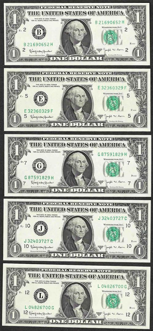 One District Set of 1963B $1 Federal Reserve BARR Uncirculated Notes.