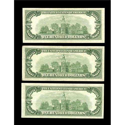 District set of 1950-E $100 notes. VF-XF 3 Notes District set of 1950-E $100 notes.