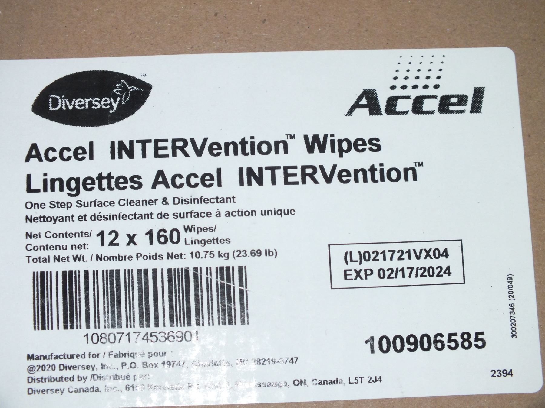 Diversey Accel Intervention Surface Cleaner & Disinfectant Wipes, you get 1 case of 12 tin, 160 wipes per tin, expired Feb 17/24...New
