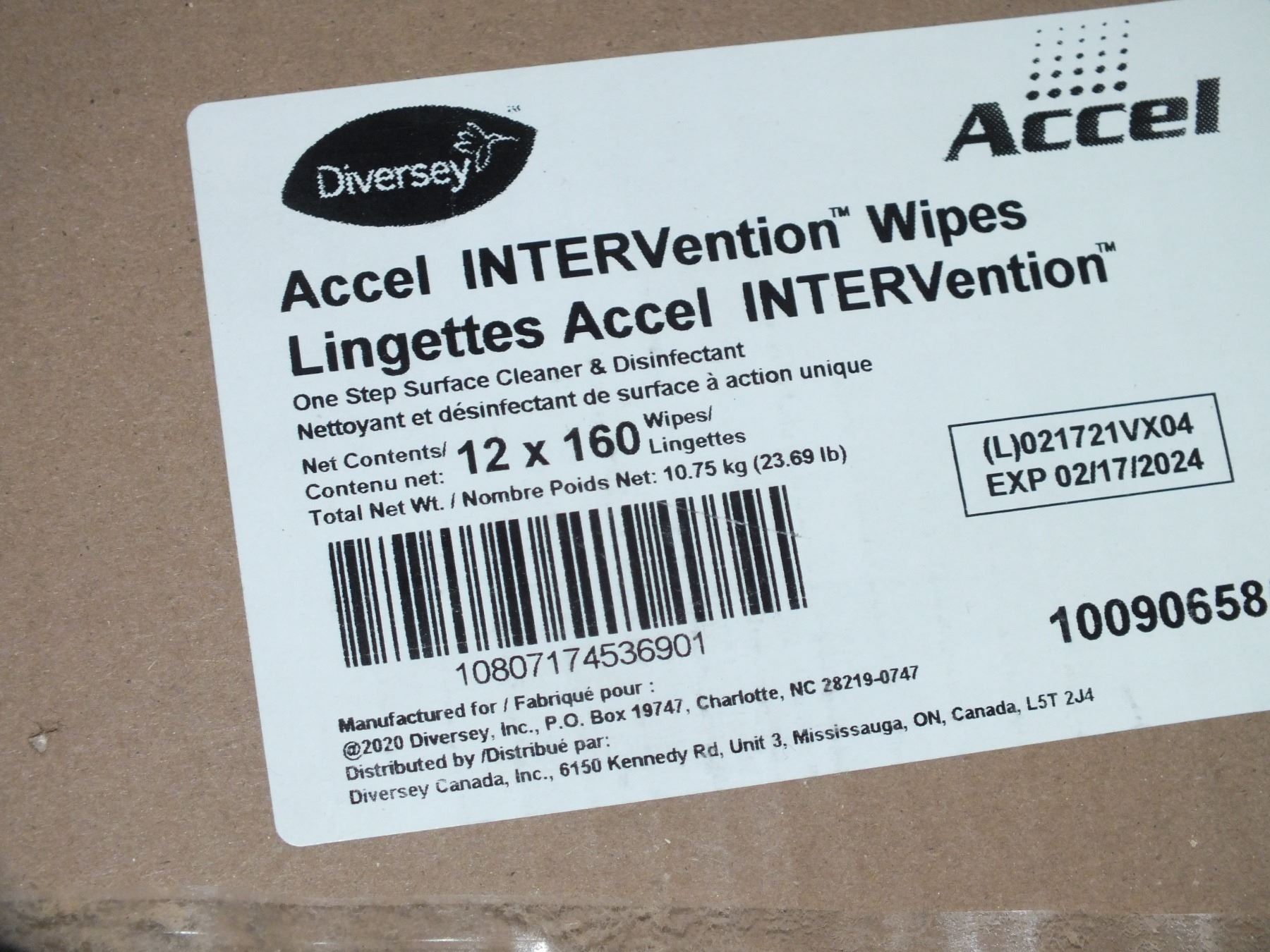 Diversey Accel Intervention Surface Cleaner & Disinfectant Wipes, you get 1 case of 12 tin, 160 wipes per tin, expired Feb 17/24...New