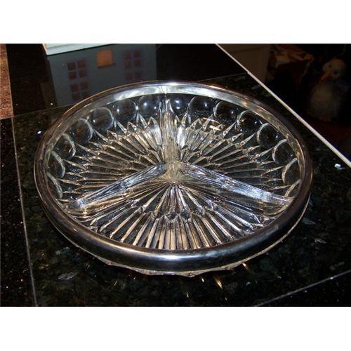 <tr><td>Title:Divided Glass Relish with Silver Rim</td></tr>