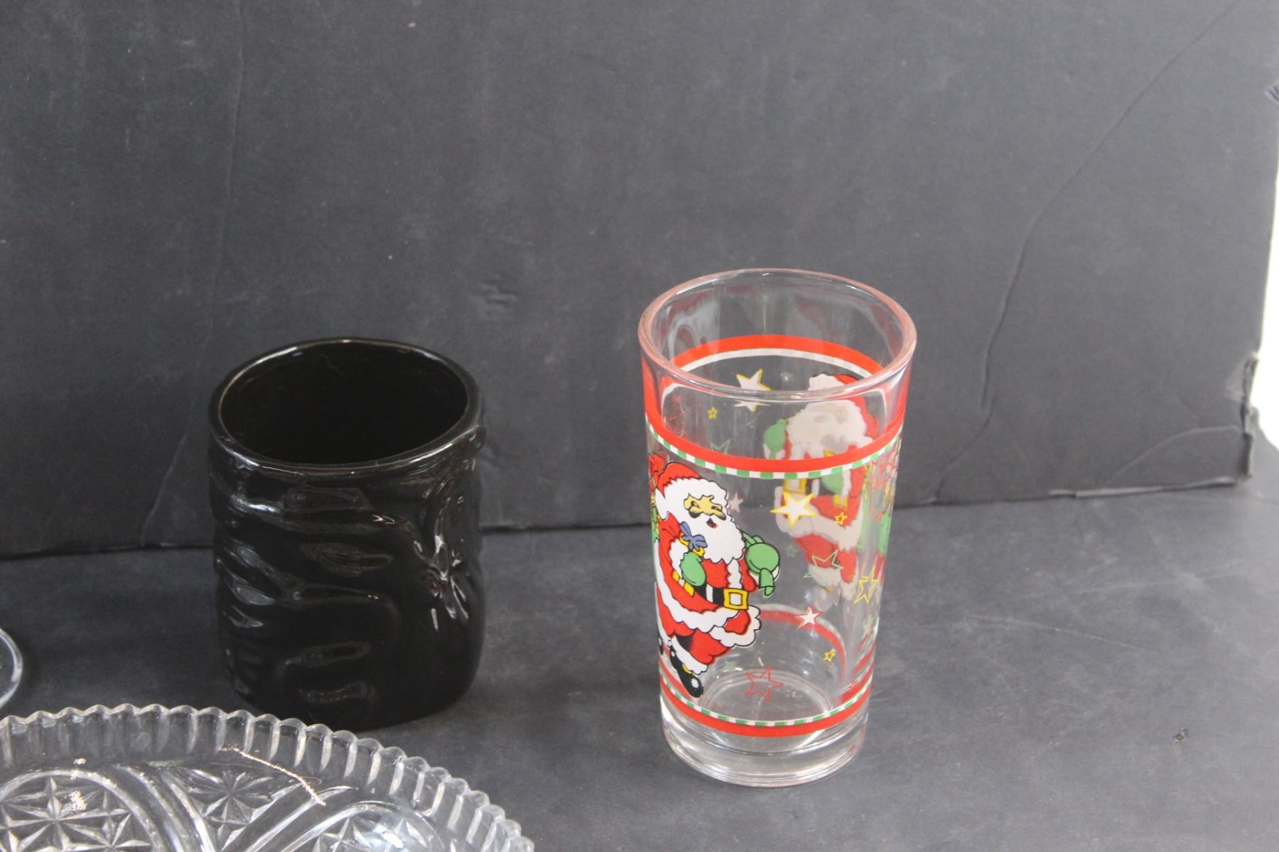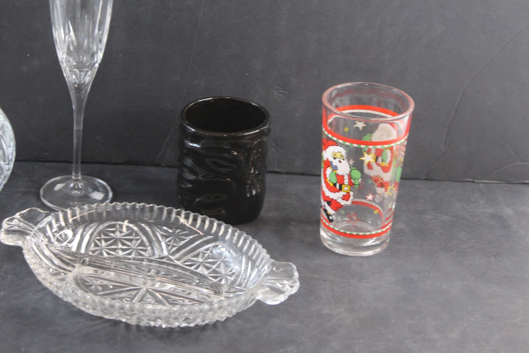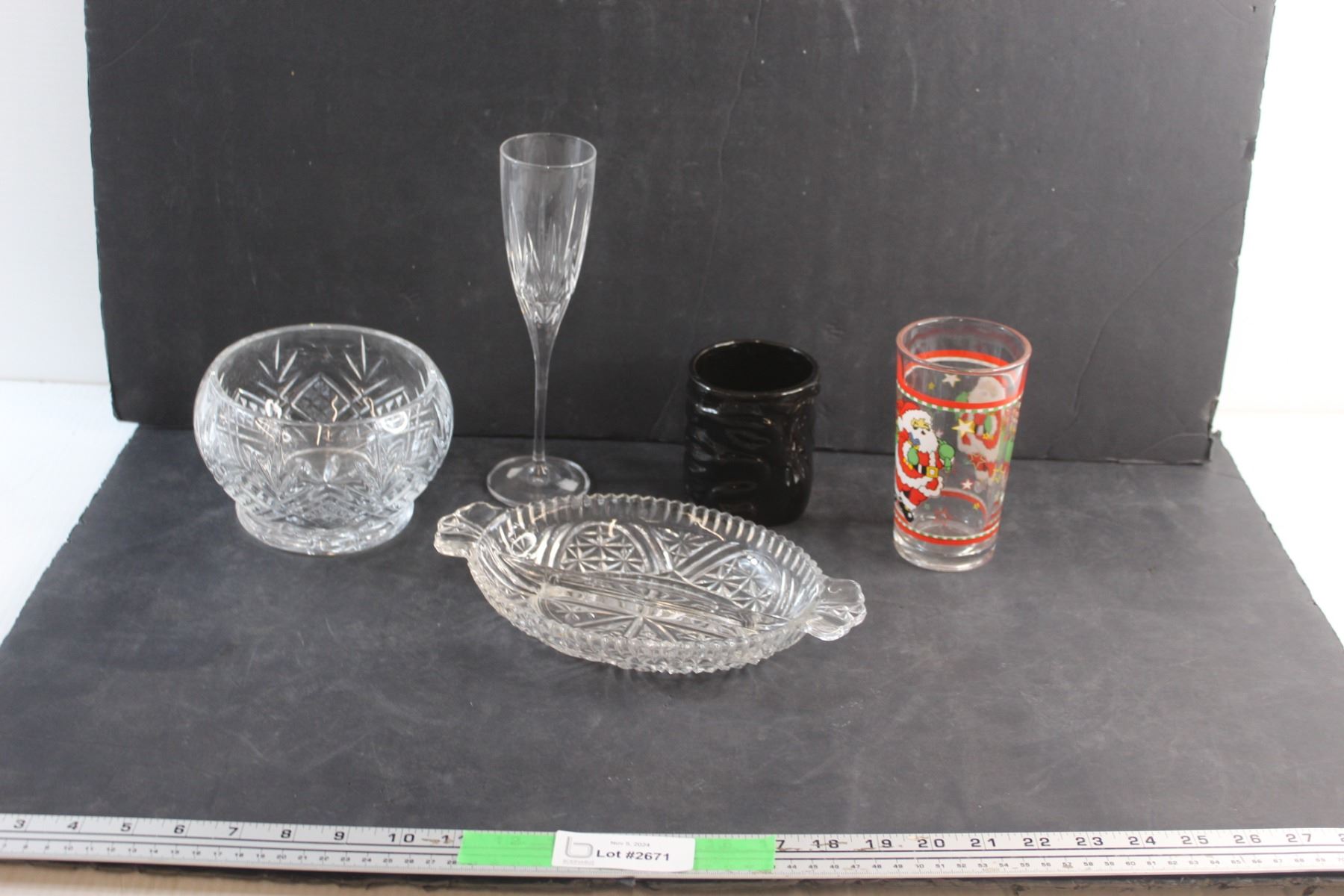 Divided Glass Serving Tray, Glass Bowl, Goblet and (2) Glasses