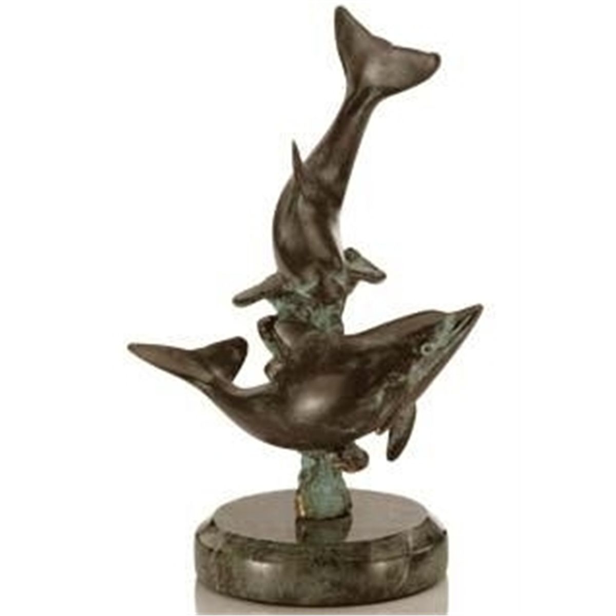 Diving Dolphins Bronze Sculpture - 6.5"H 4.5"W 3.5 "D - Great Attention To Detail - Beautiful Finish - Lost Wax Cast