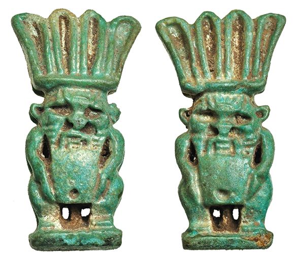Divinidad Bes (664-332 a.C.). Fayenza vitrificada color turquesa. Altura 4,3 cm.