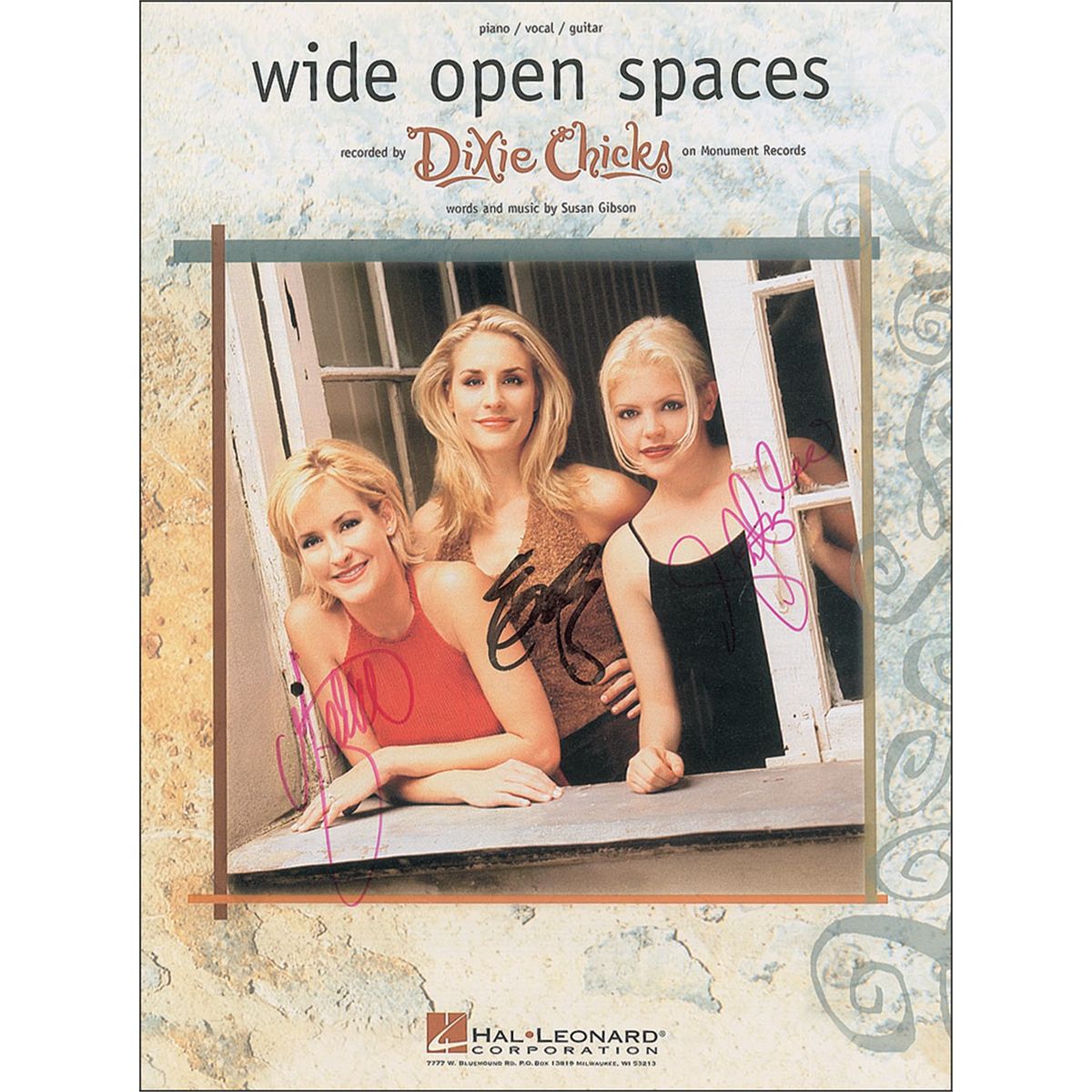 Sheet music for ‘Wide Open Spaces,’ 9 x 12, eight pages, signed on the front cover in various color felt tip by Natalie, Emily, and Martie, all signing first names only. In fine condition, with some light contrast to beginning of Natalie’s signature.