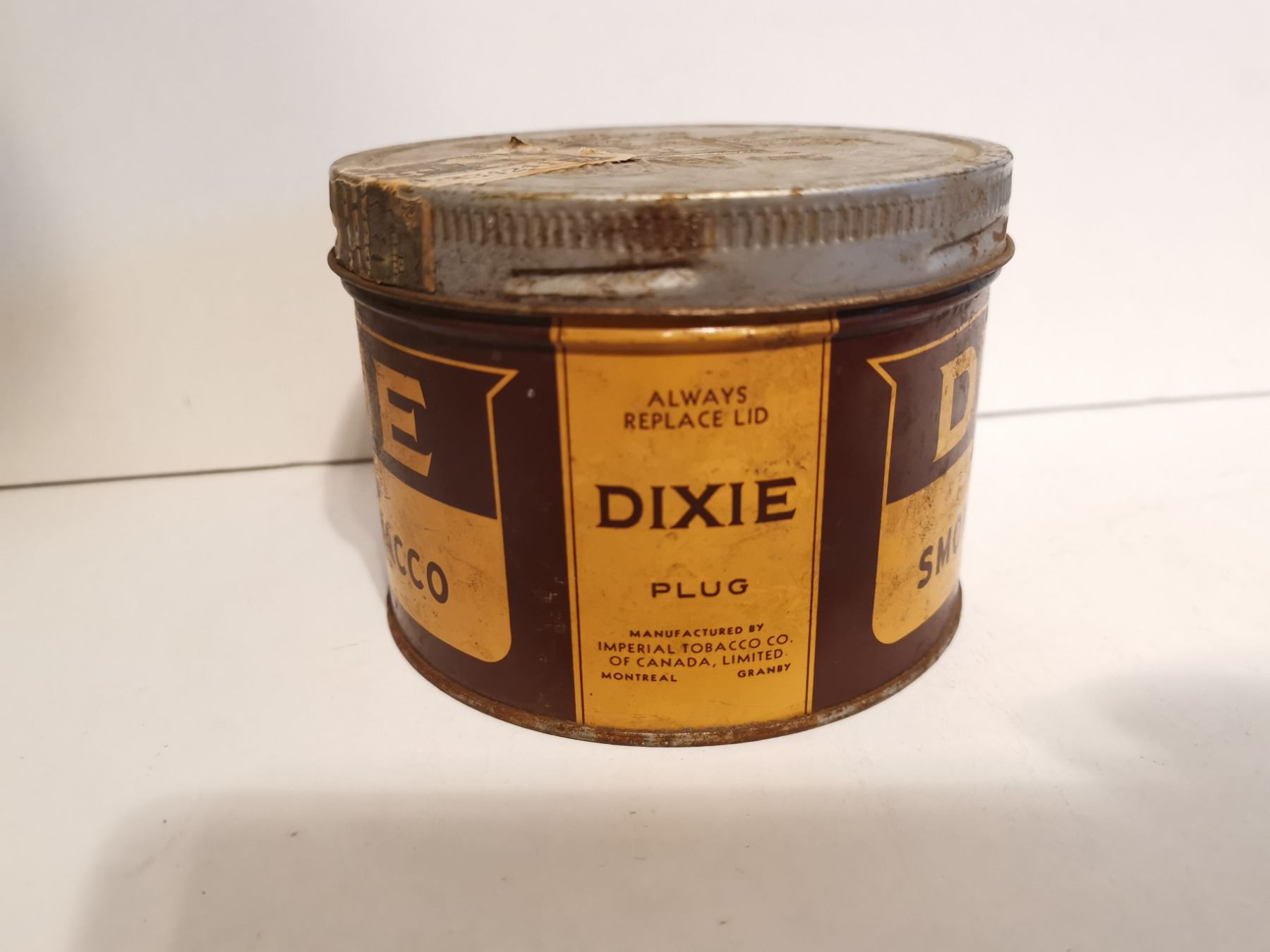 Dixie plug smoking tobacco tin 3"high