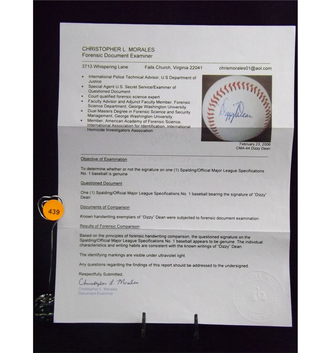 Dizzy Dean Autographed Baseball. Spalding/Official Major League Specifications No.1 Ball. Appraised or estimated retail value $5000. COA by Christopher Morales. All Sales Final. Please see terms and conditions of auction.
