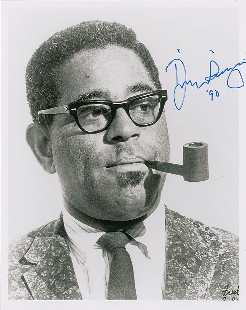 Glossy 8 x 10 head-and-shoulders photo of a younger Gillespie, signed in blue felt tip, “Dizzy Gillespie ’90.” In fine condition.