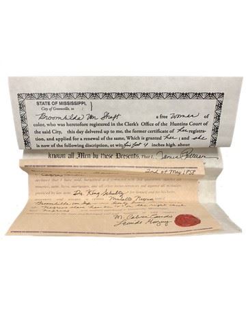 Broomhilda (Kerri Washington) screen used, freedom papers, includes three separate sheets, 1 sheet that shows she is free and the other two were her purchase papers.(10x8)