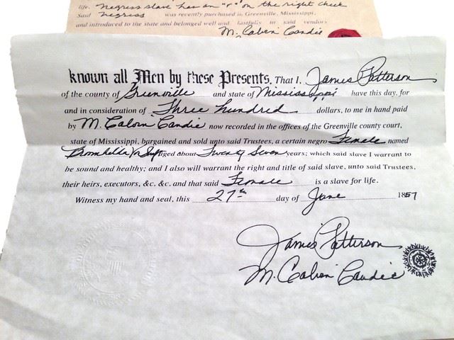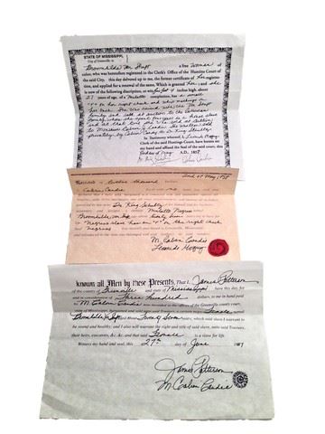 Broomhilda (Kerri Washington) screen used, hero, these are her freedom papers, includes three separate sheets, 1 sheet that shows she is free and the other two were her purchase papers.(10x8)