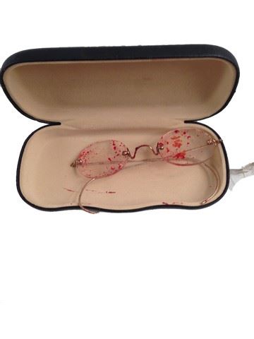 Butch Pooch (James Remar) screen worn, hero, bloody reading glasses from after being shot to death. Clear with no frame and gold sides. Glasses are soiled and bloody from production.(6x3)