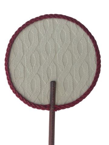 Screen used, hand held fan with custom design and hand stitching around the boarder of the fan, handle is made of wood. (18x9)